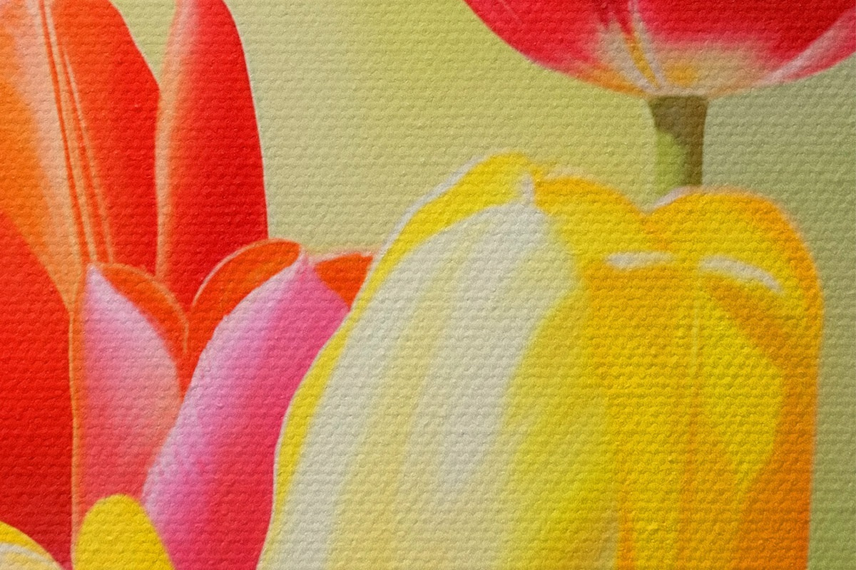 Er zijn drie soorten materiaal te bestellen: Economic Canvas - een dicht en duurzaam materiaal voor digitaal printen, identiek aan schildersdoek, waterdicht oppervlak, realistische weergave van details, materiaal met gemiddelde korrel. Premium Canvas - de textuur lijkt op die van schildersdoek (verweven kleine draden). Zachte, gedetailleerde reproductie van de afbeelding op een mat oppervlak. Eco-Premium - hoogwaardige 100% katoenen stof. Dankzij de natuurlijke katoenvezels is het materiaal duurzaam en slijtvast. Uitstekende kleurweergave en detail.