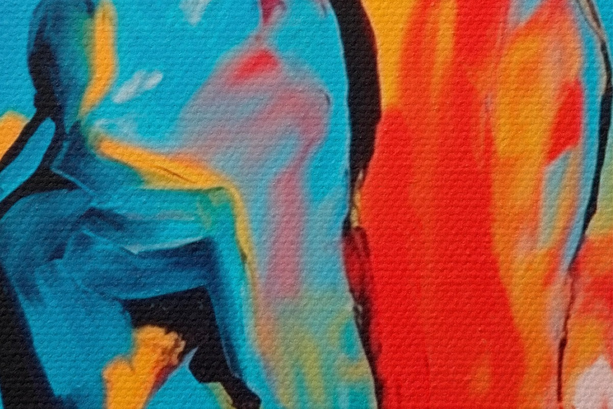 Het schilderij kan direct na ontvangst worden opgehangen. Het schilderij wordt opgespannen op een 2 cm breed houten spieraam.