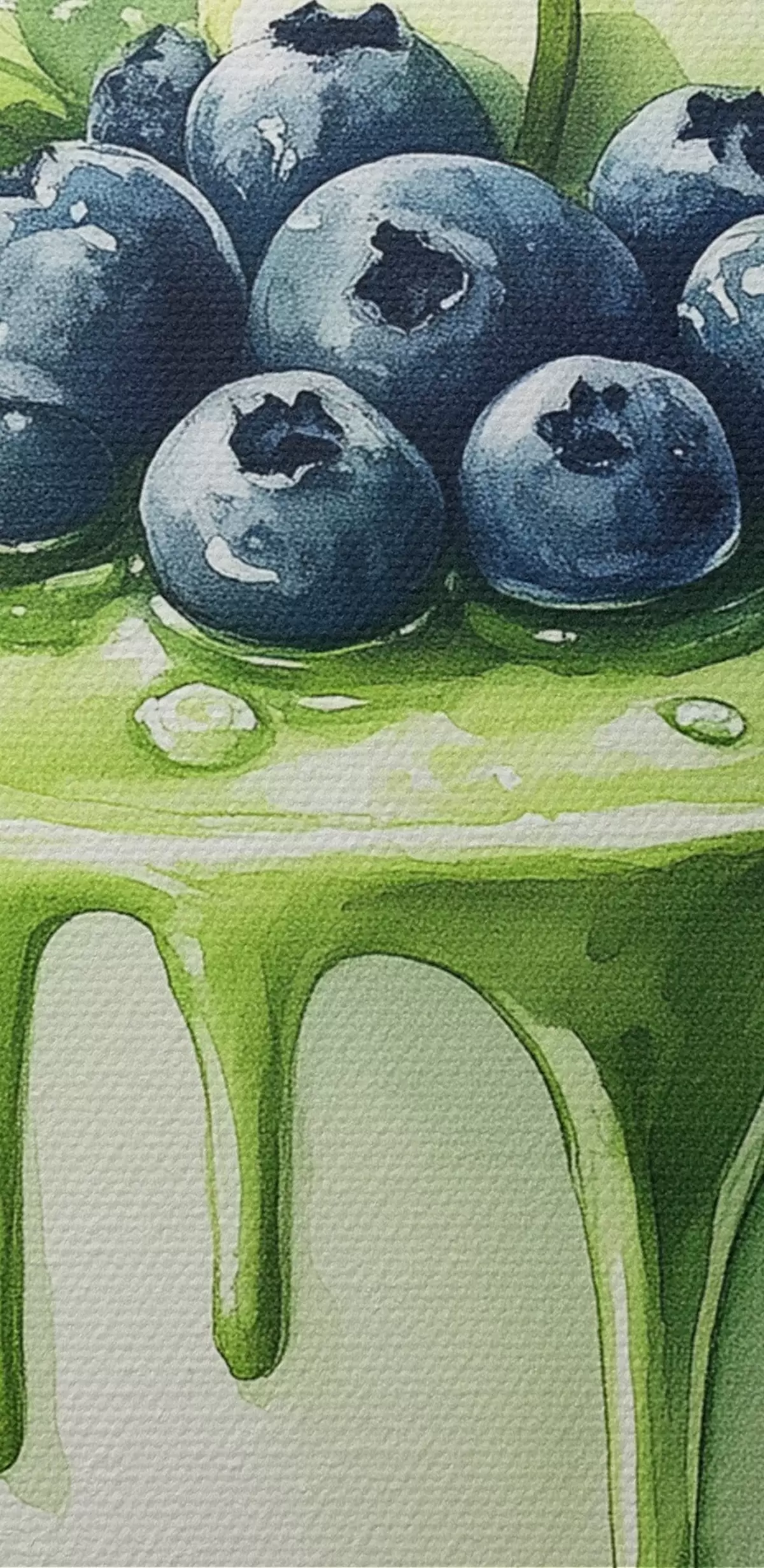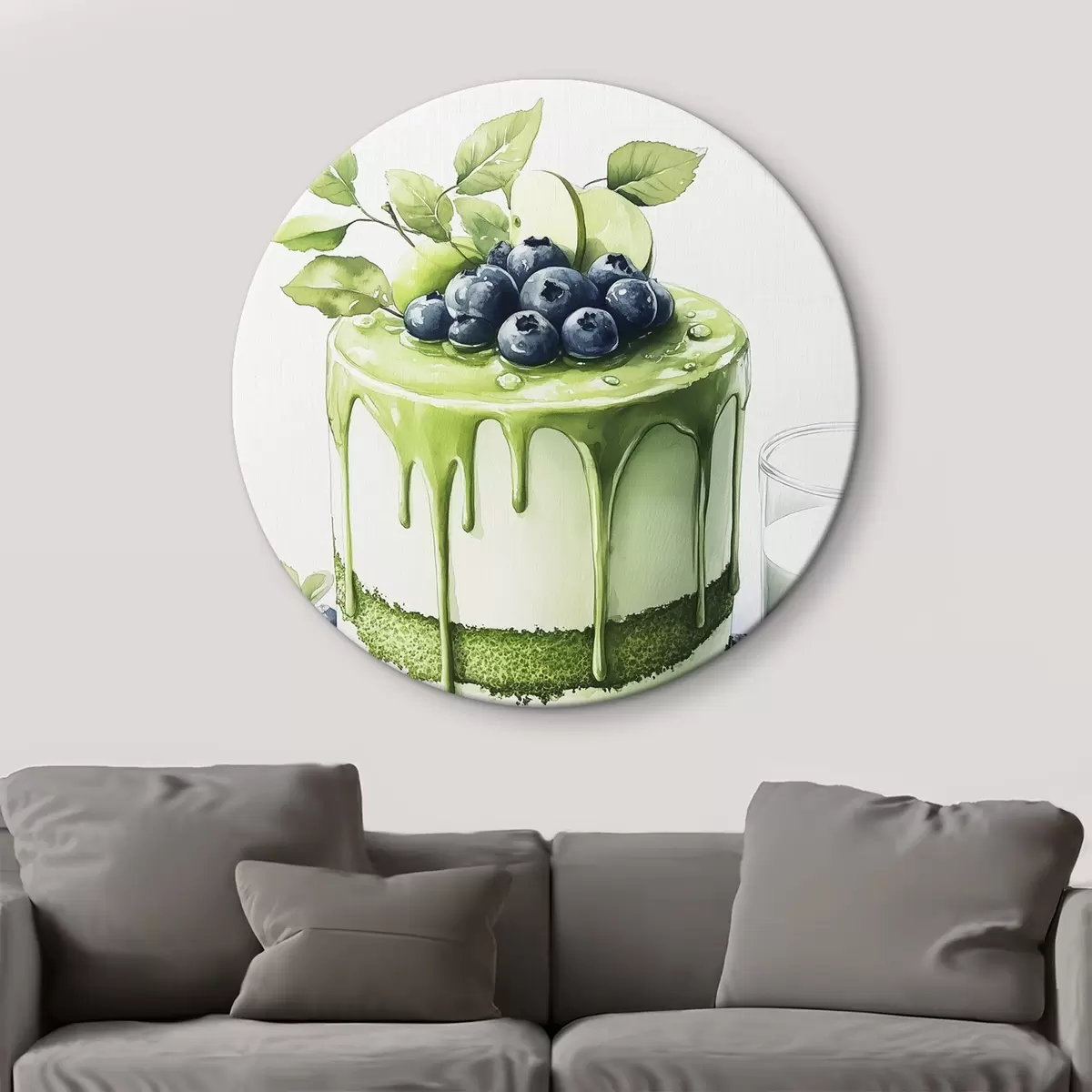 Ronde schilderijen Matcha taart met bosbessen en appels, aquarelstijl Nr r44304
