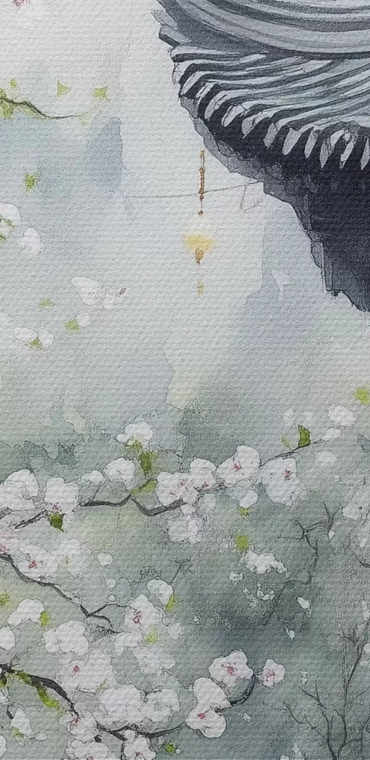 Ronde schilderijen Japanse tuin met kersenboom en huis, oosters, aquarelstijl Nr r44309
