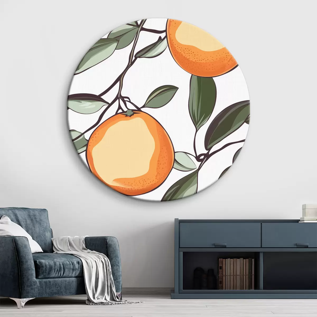 Ronde schilderijen Geschilderde sinaasappels aan een tak Nr r44319