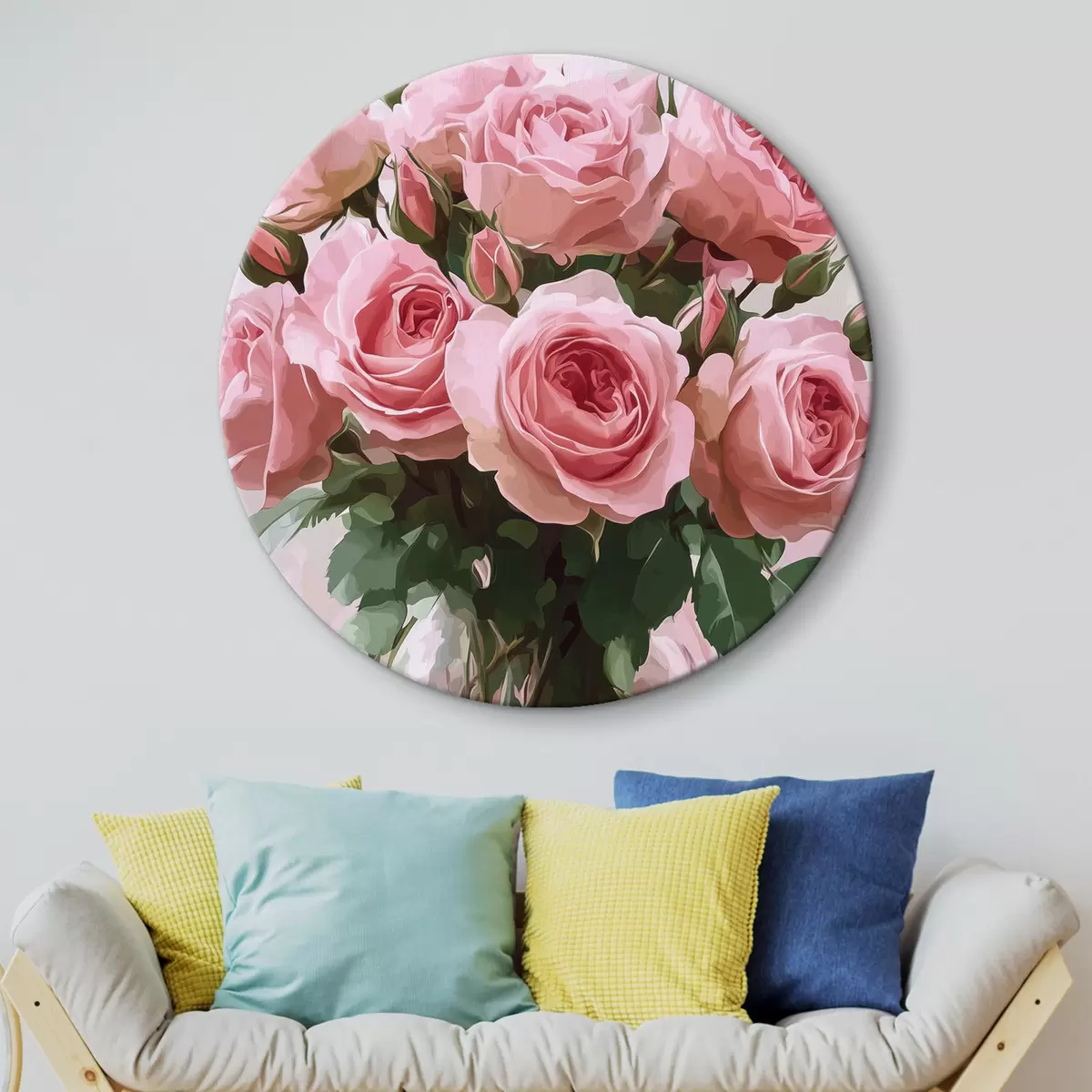 Ronde schilderijen Boeket roze bloemen Nr r44321