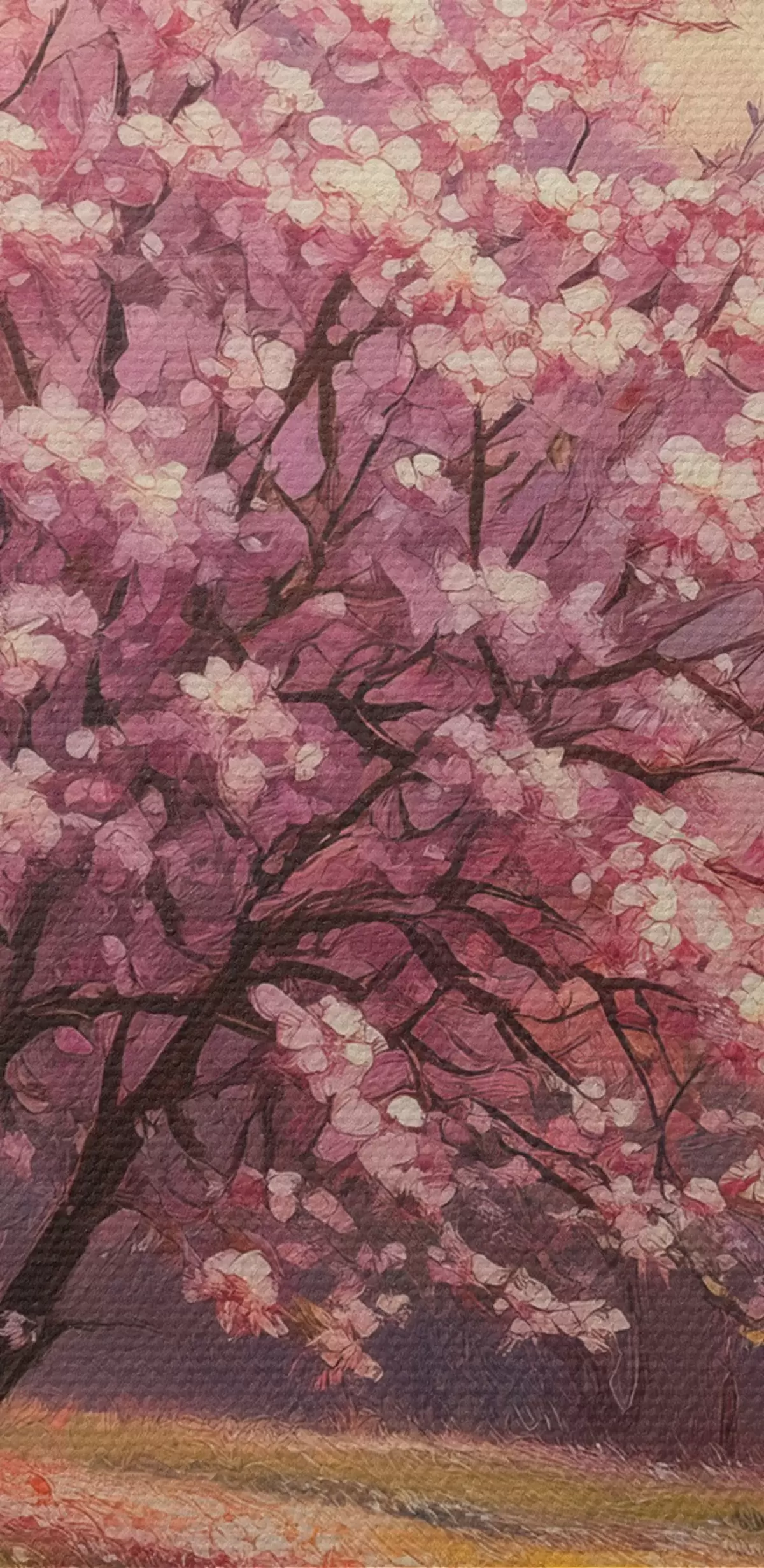 Ronde schilderijen Bloeiende roze bomen Nr r44324