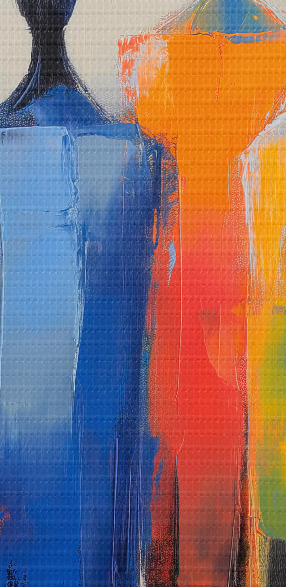 Het schilderij kan direct na ontvangst worden opgehangen. Het schilderij wordt opgespannen op een 2 cm breed houten spieraam.