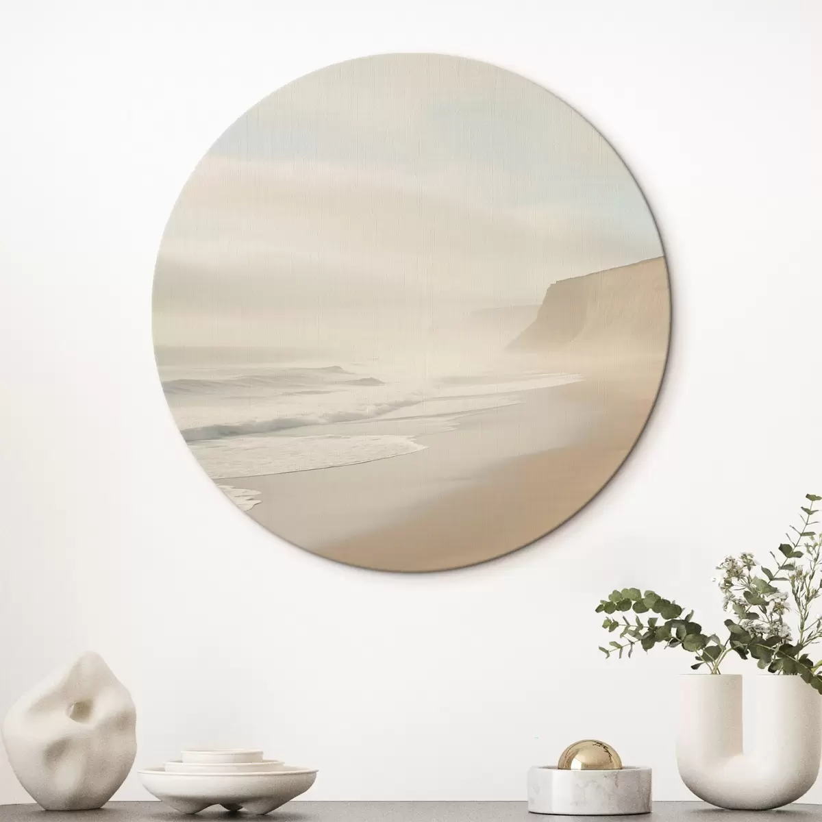 Ronde schilderijen Landschap van een zandstrand met een klif op een heldere zonnige dag Nr r44391