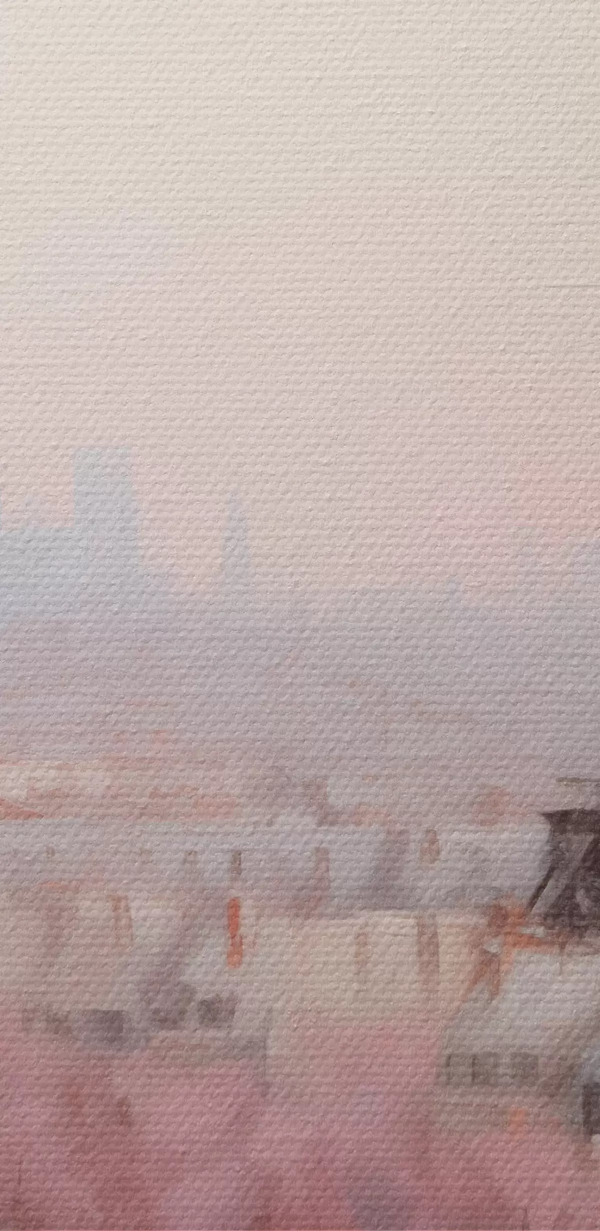 Ronde schilderijen Eiffeltoren in Parijs met kersenbloesembomen in de lente, zachte pastelkleuren Nr r44398