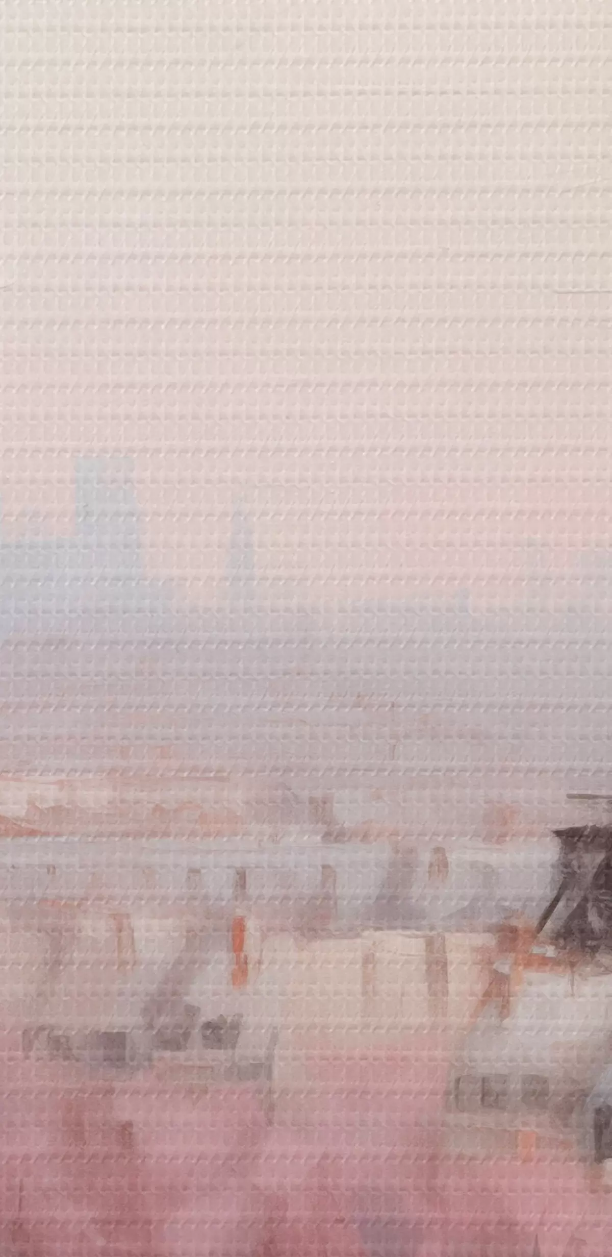 Het schilderij kan direct na ontvangst worden opgehangen. Het schilderij wordt opgespannen op een 2 cm breed houten spieraam.