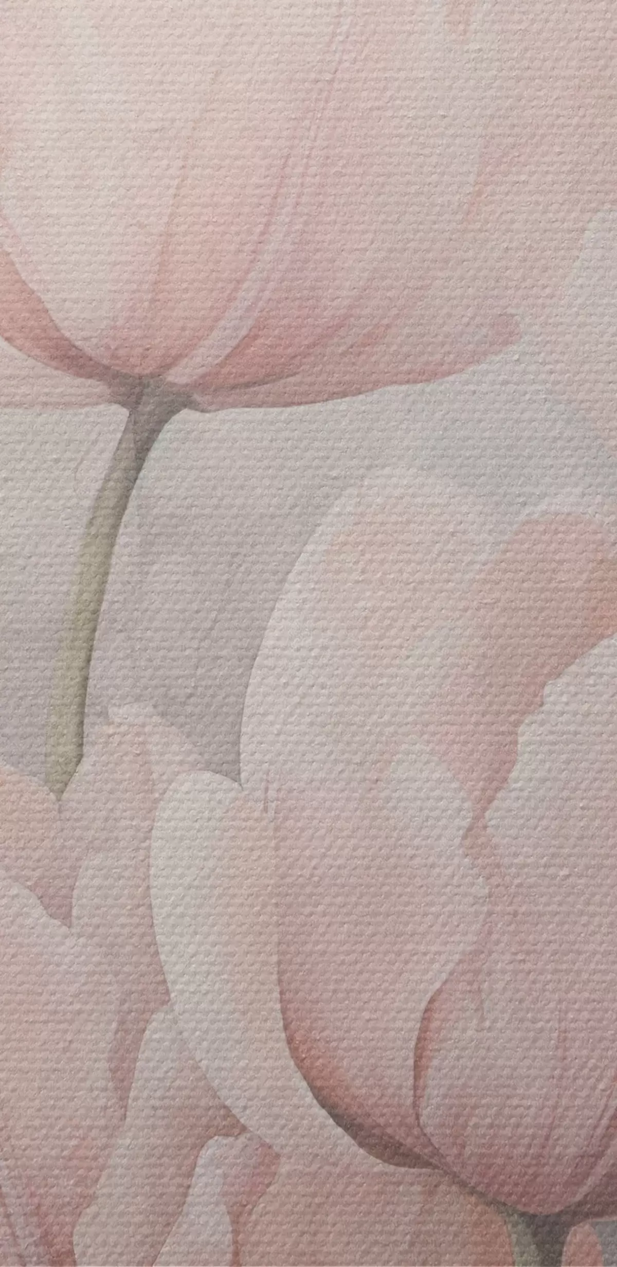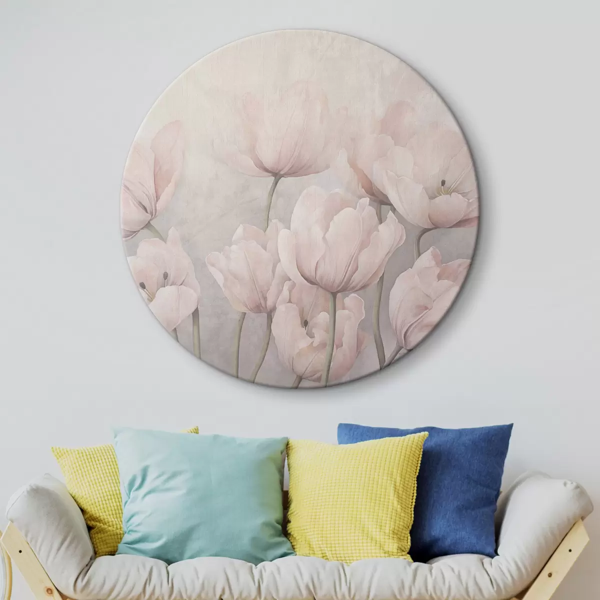 Ronde schilderijen Vintage roze tulpen met lange stelen, zachte gedempte kleuren, lichtgrijze achtergrond Nr r44407
