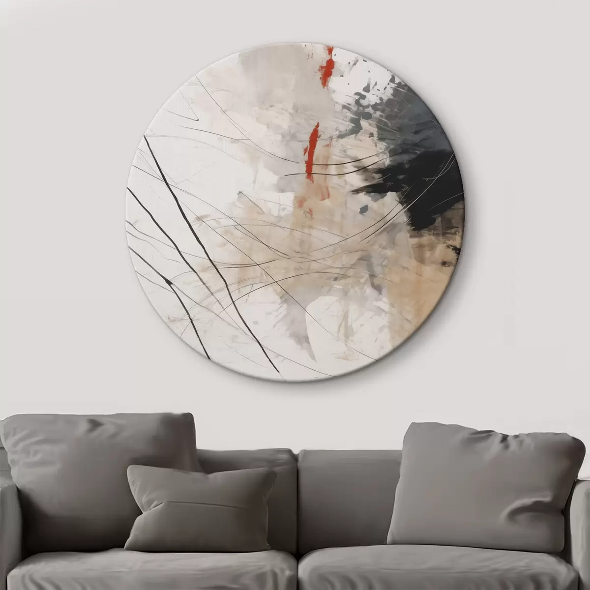 Ronde schilderijen Abstractie van vlekken, lijnen Nr r44418