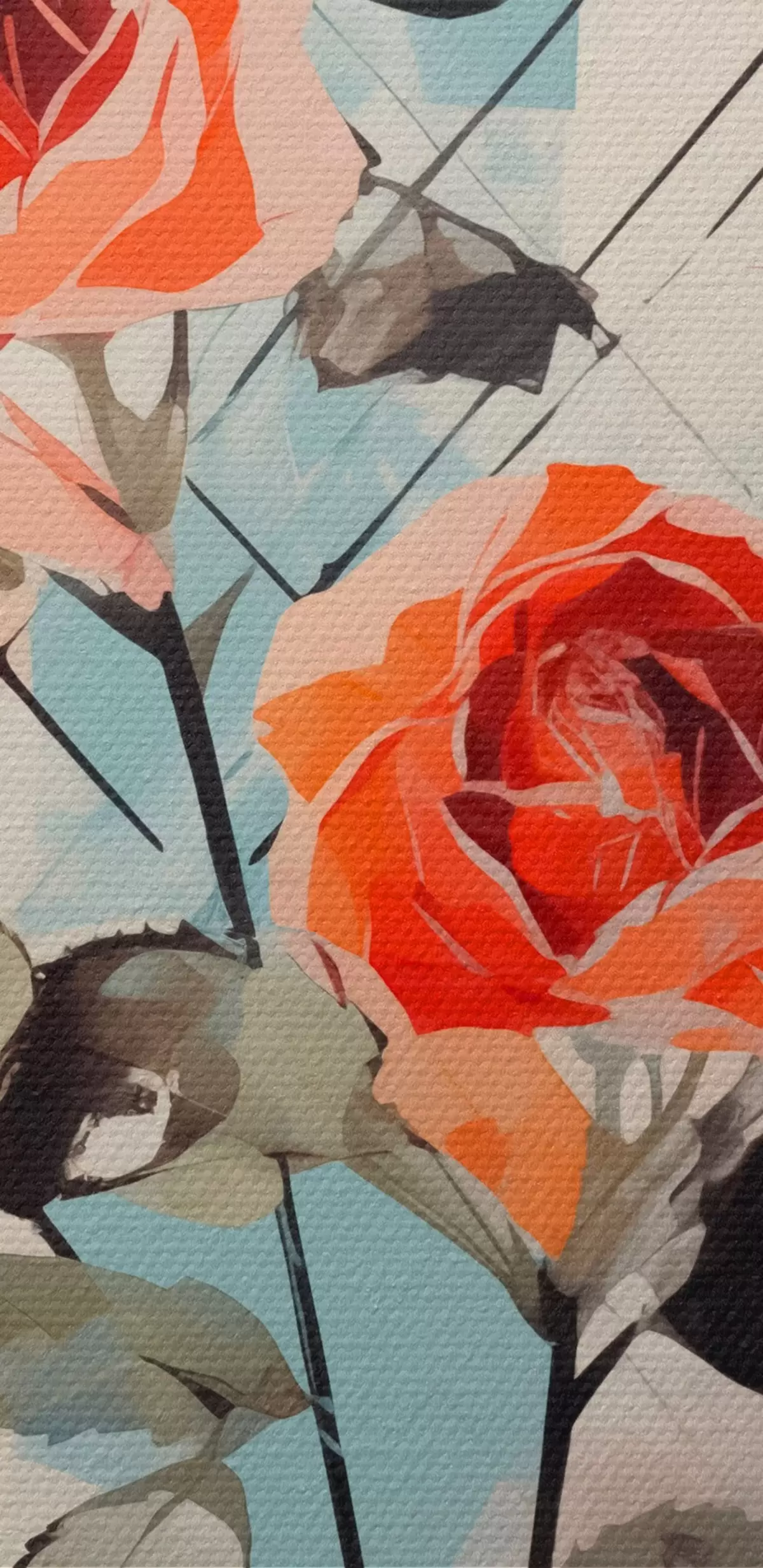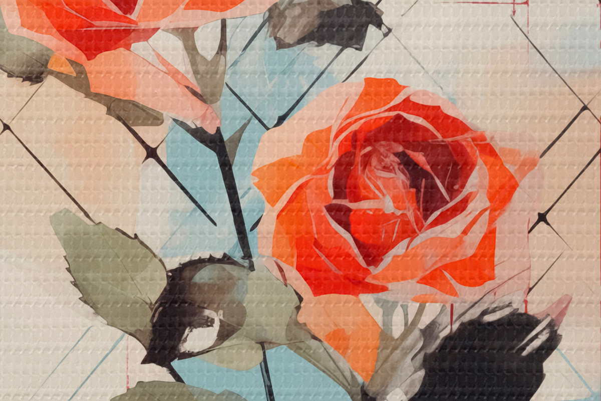 Ronde schilderijen Rozen op een achtergrond van lijnen en vlekken r44421