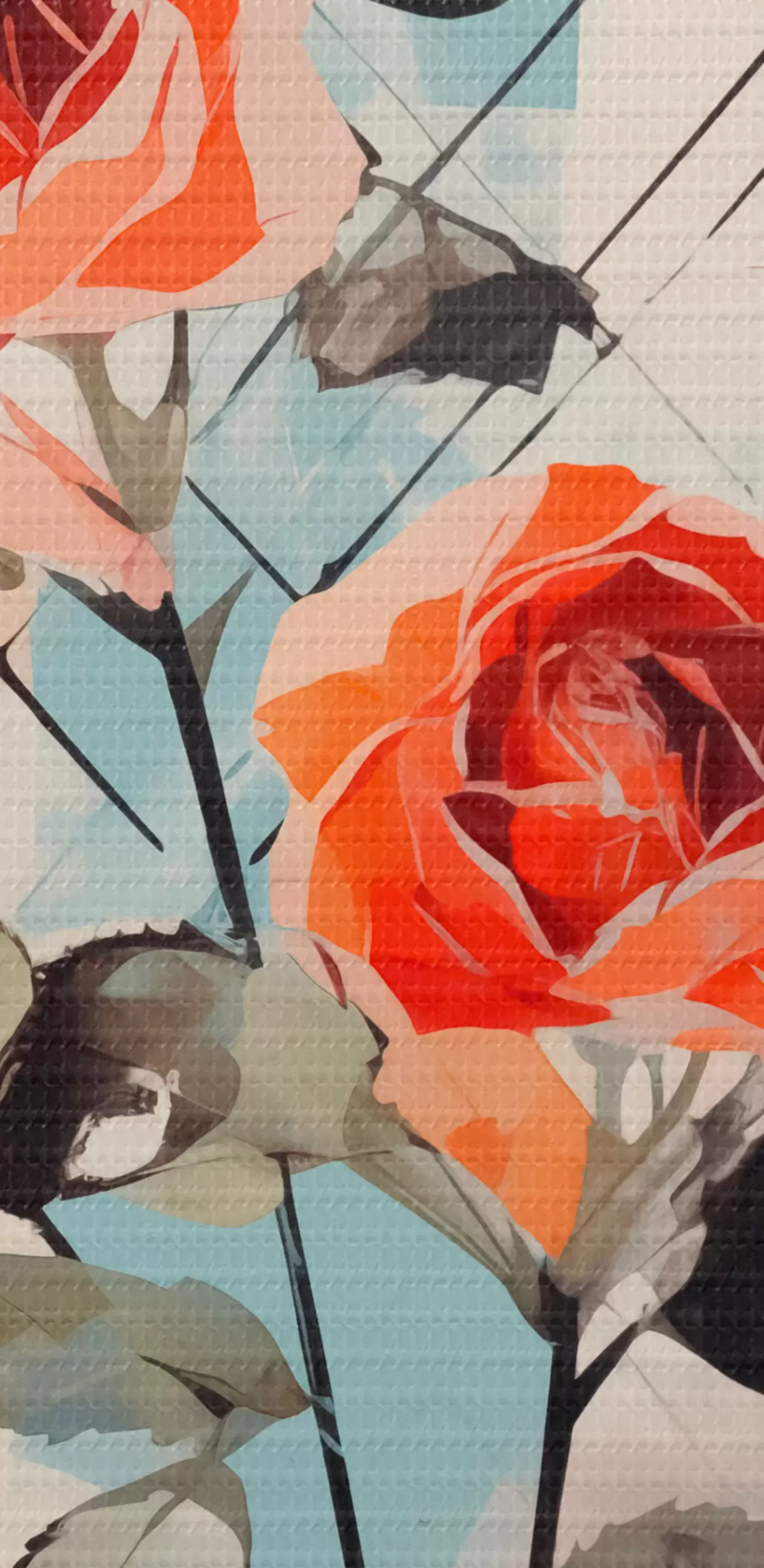 Ronde schilderijen Rozen op een achtergrond van lijnen en vlekken Nr r44421