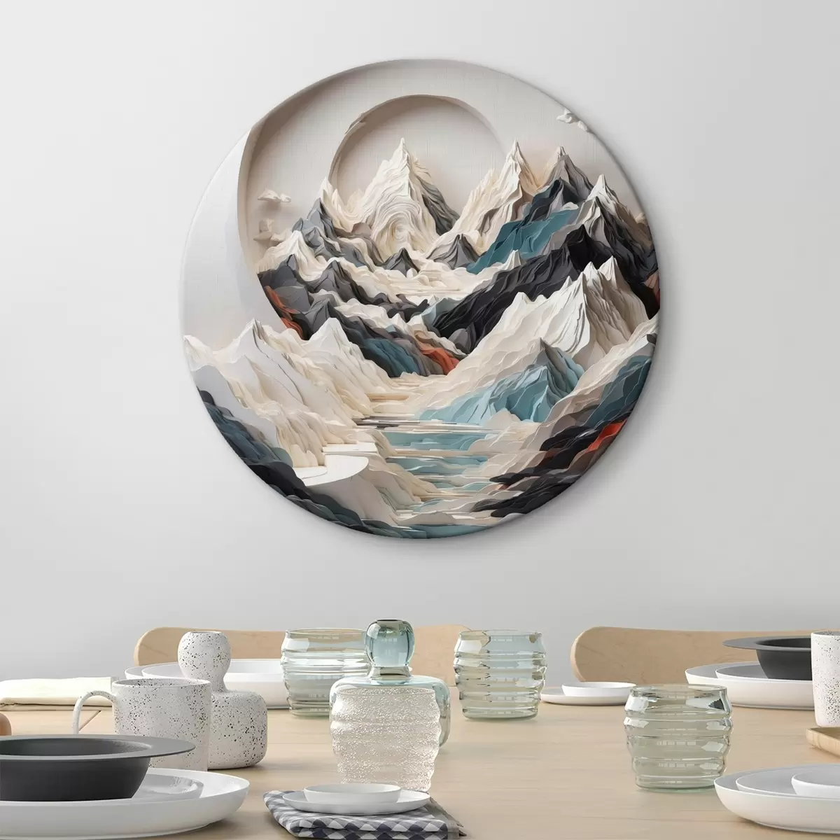 Ronde schilderijen Abstract schilderij van bergachtig gebied Nr r44427