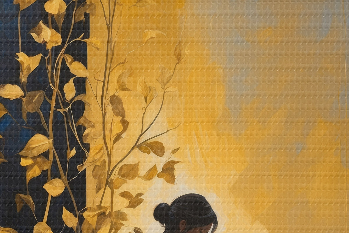 De fijne weving van draden op dit doek lijkt op het oppervlak van professionele schildersdoeken.