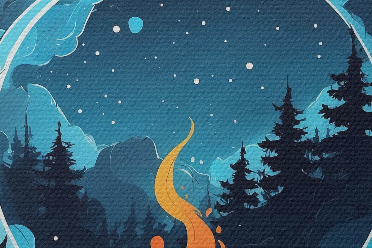 Ronde schilderijen Vreugdevuur in nachtelijk bos r44436