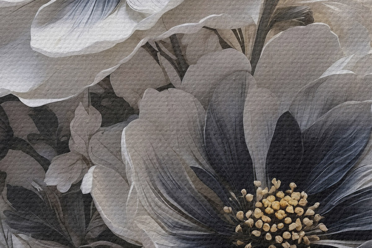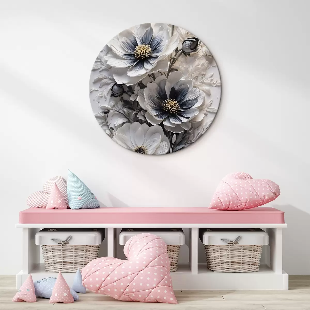 Ronde schilderijen Zwart-witte bloemen op witte achtergrond Nr r44446