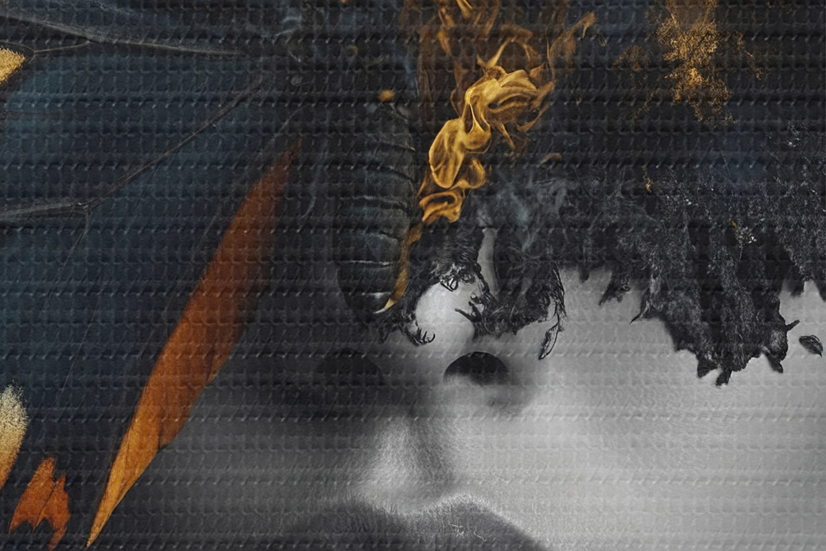 Ronde schilderijen Brandende vlinder op het gezicht van een meisje Nr r44468