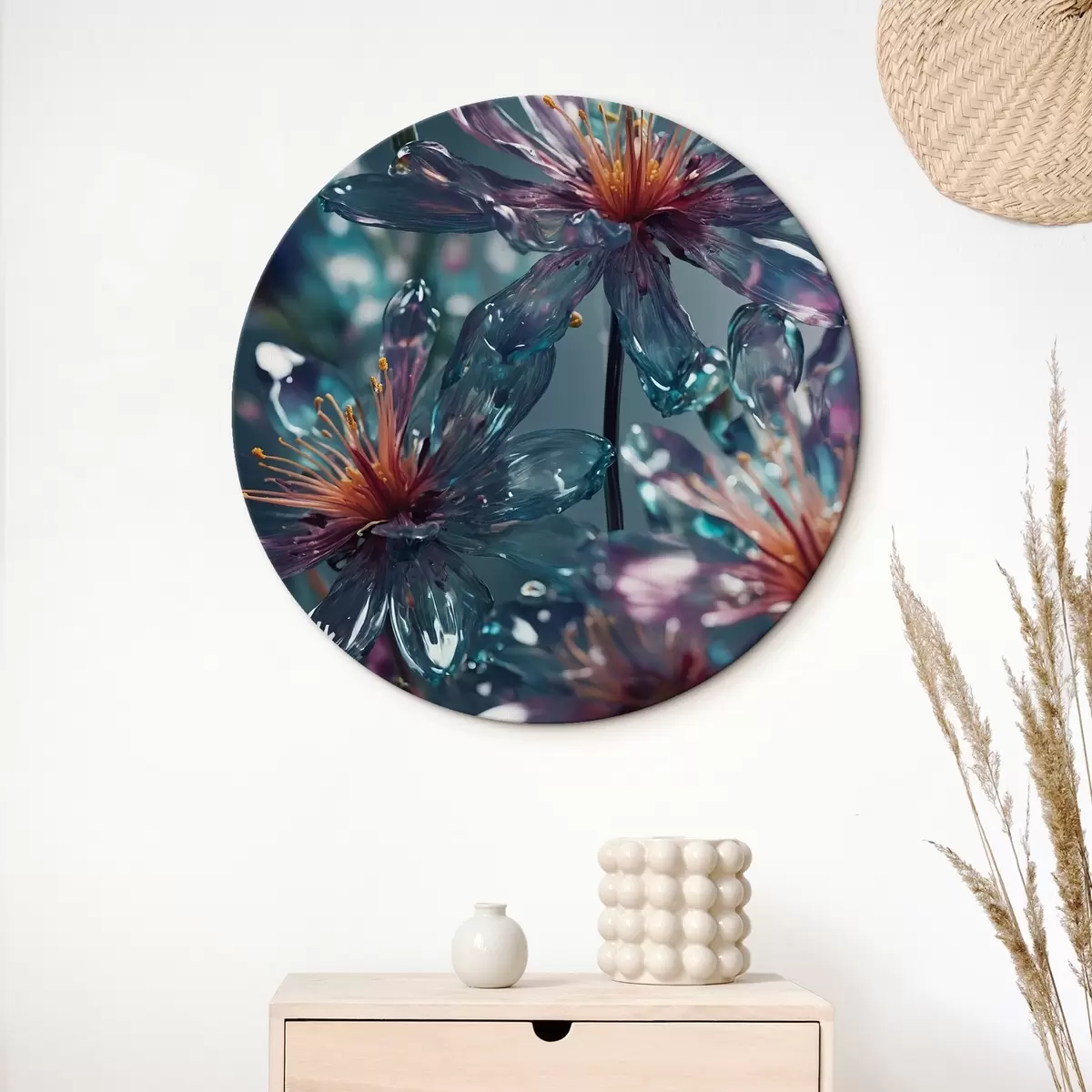 Ronde schilderijen Transparante bloemen op wazige achtergrond Nr r44469