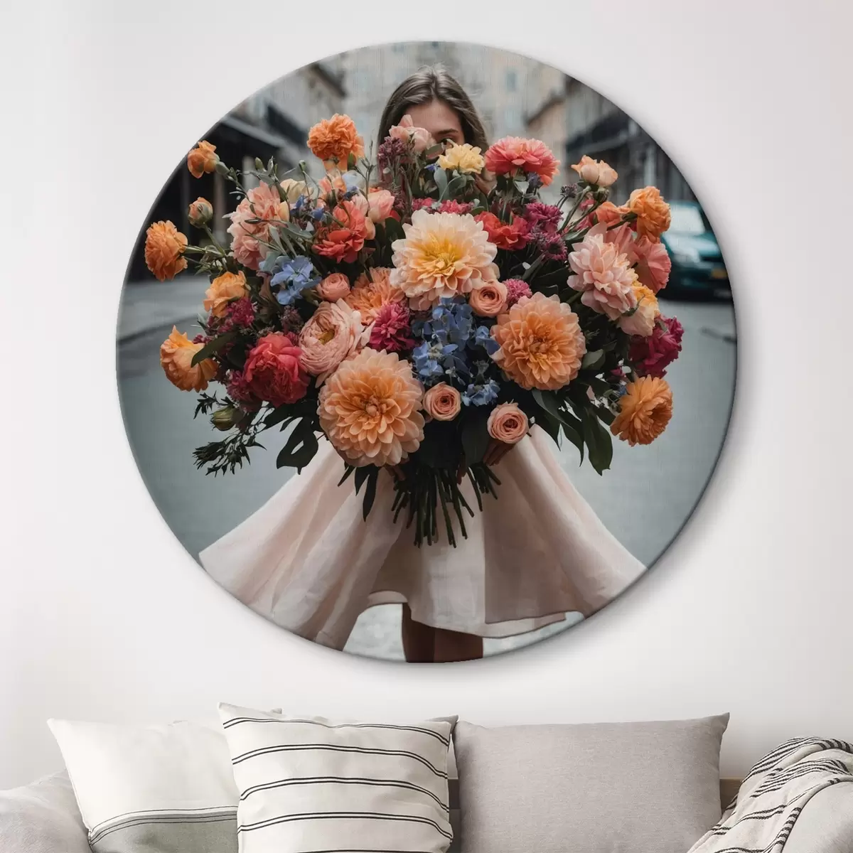 Ronde schilderijen Meisje met bloemen Nr r44474
