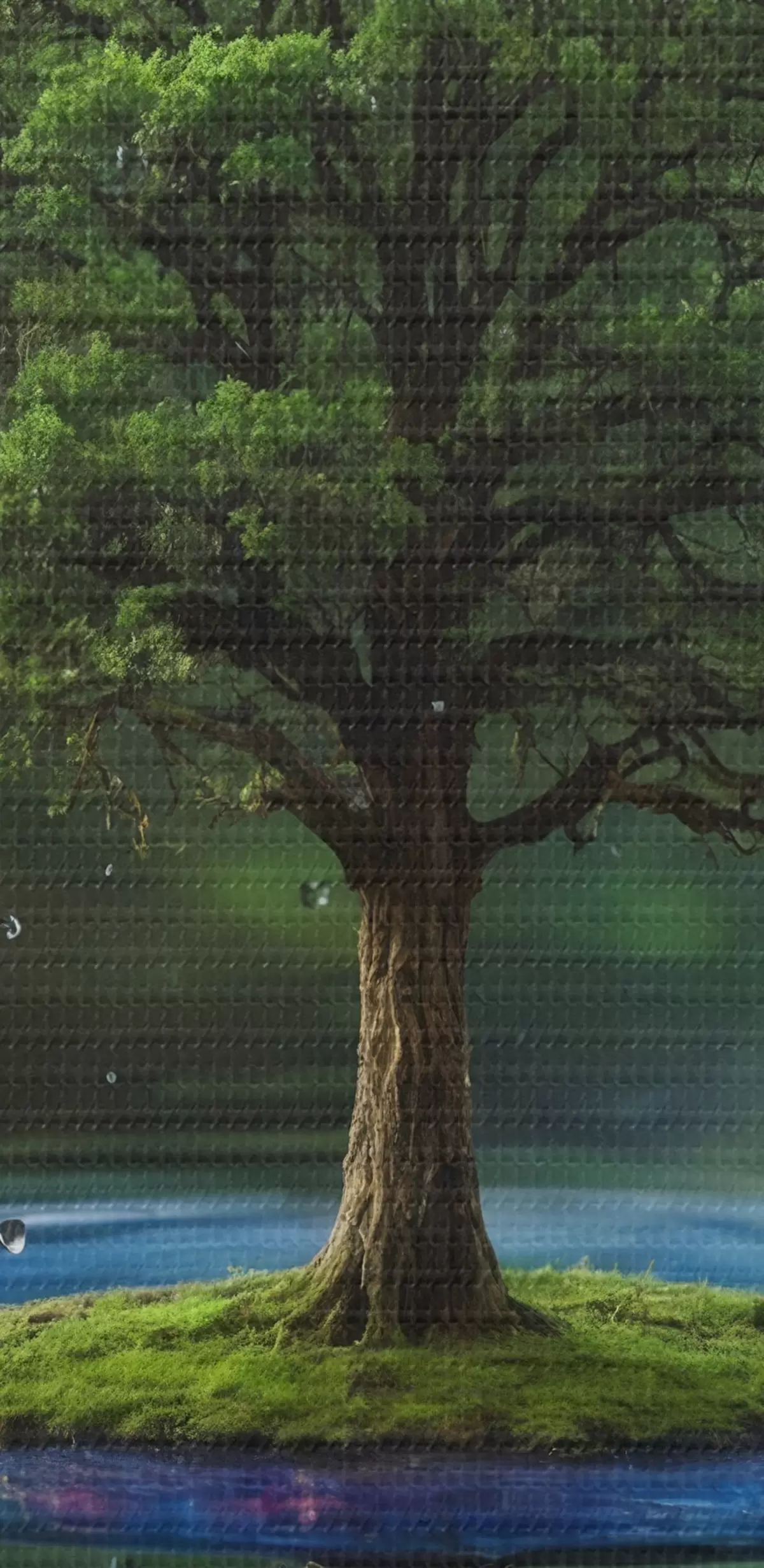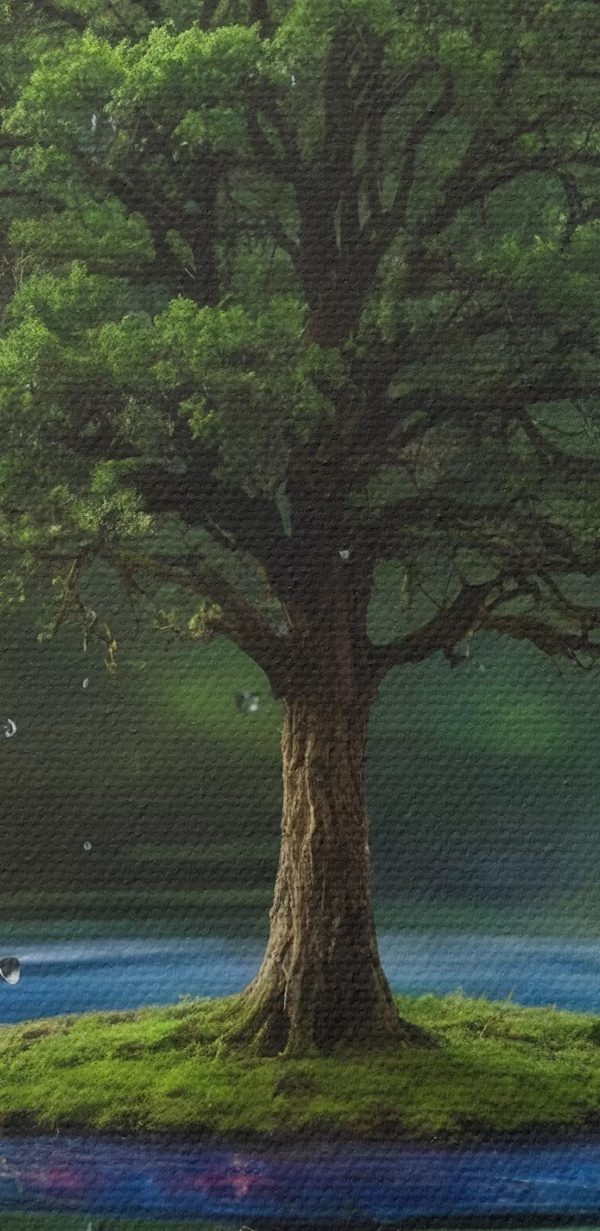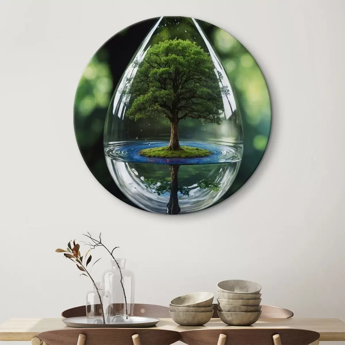 Ronde schilderijen Druppel met boomreflectie Nr r44480