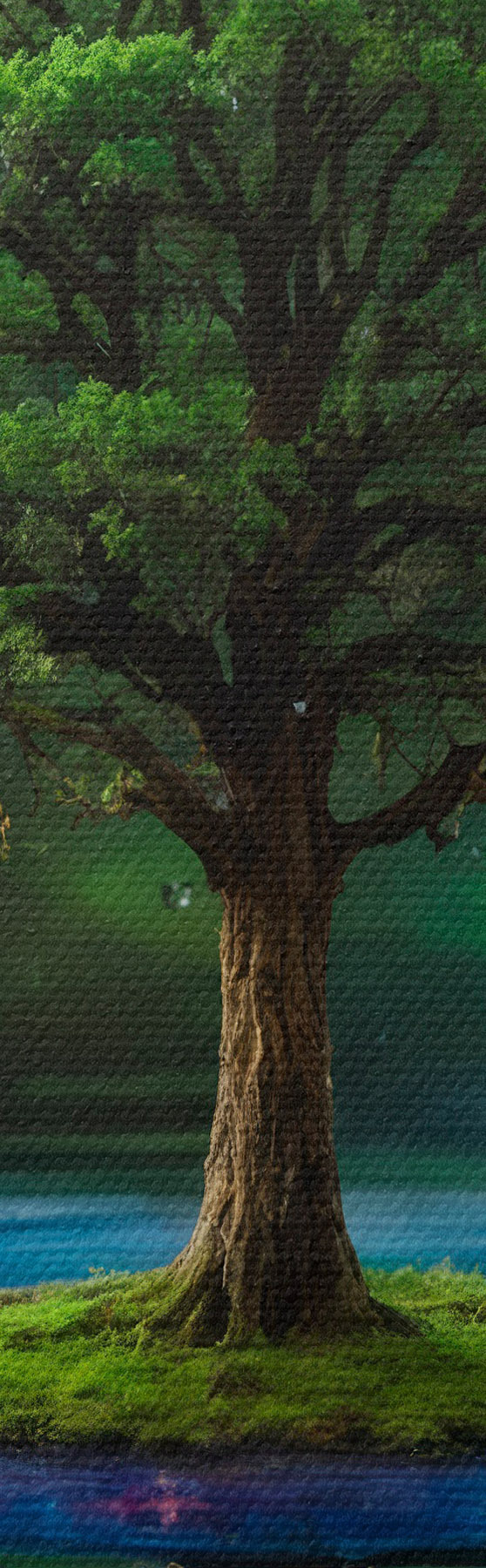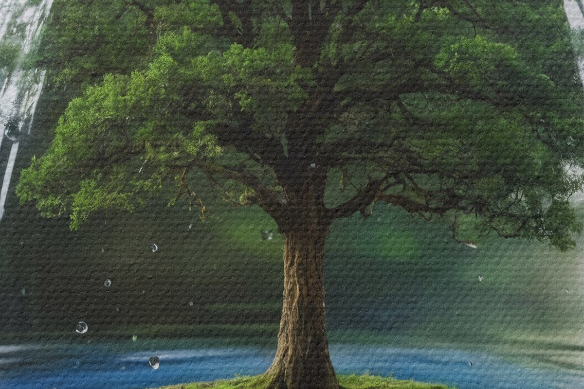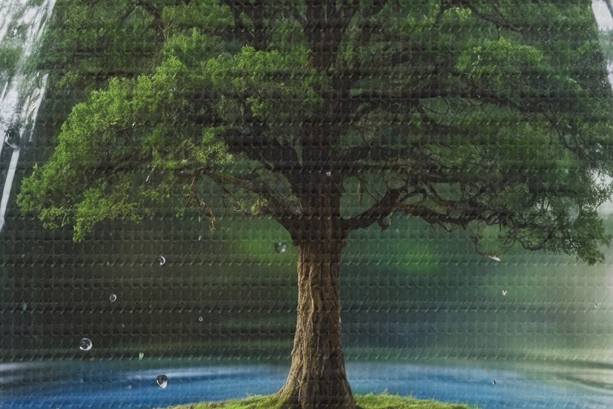 Ronde schilderijen Druppel met boomreflectie Nr r44480