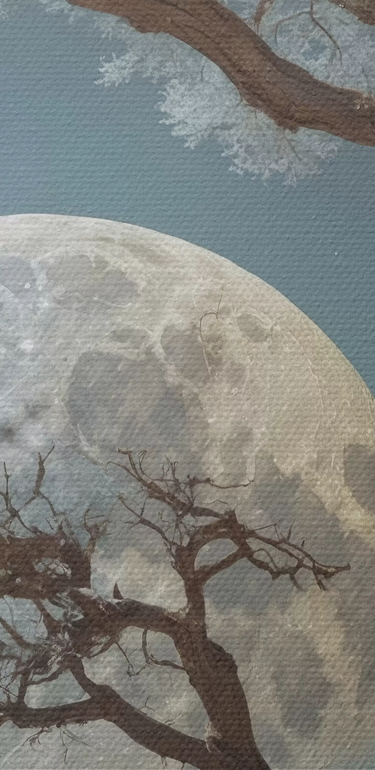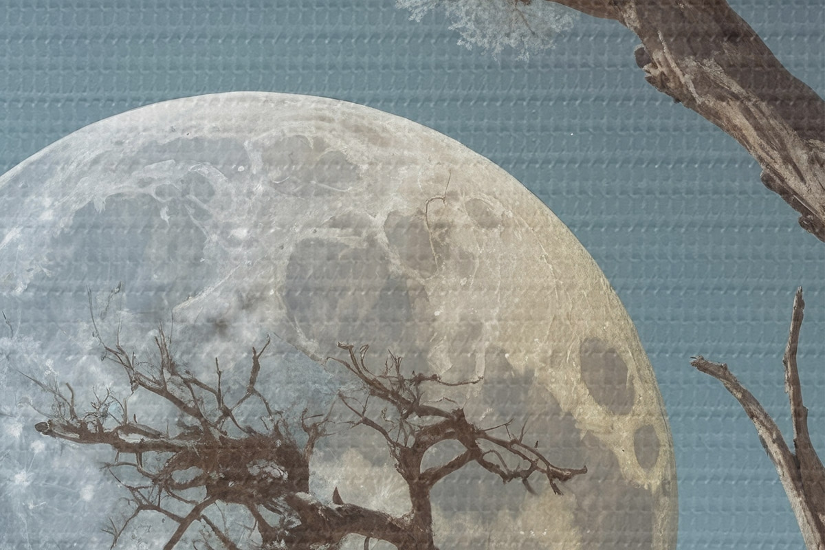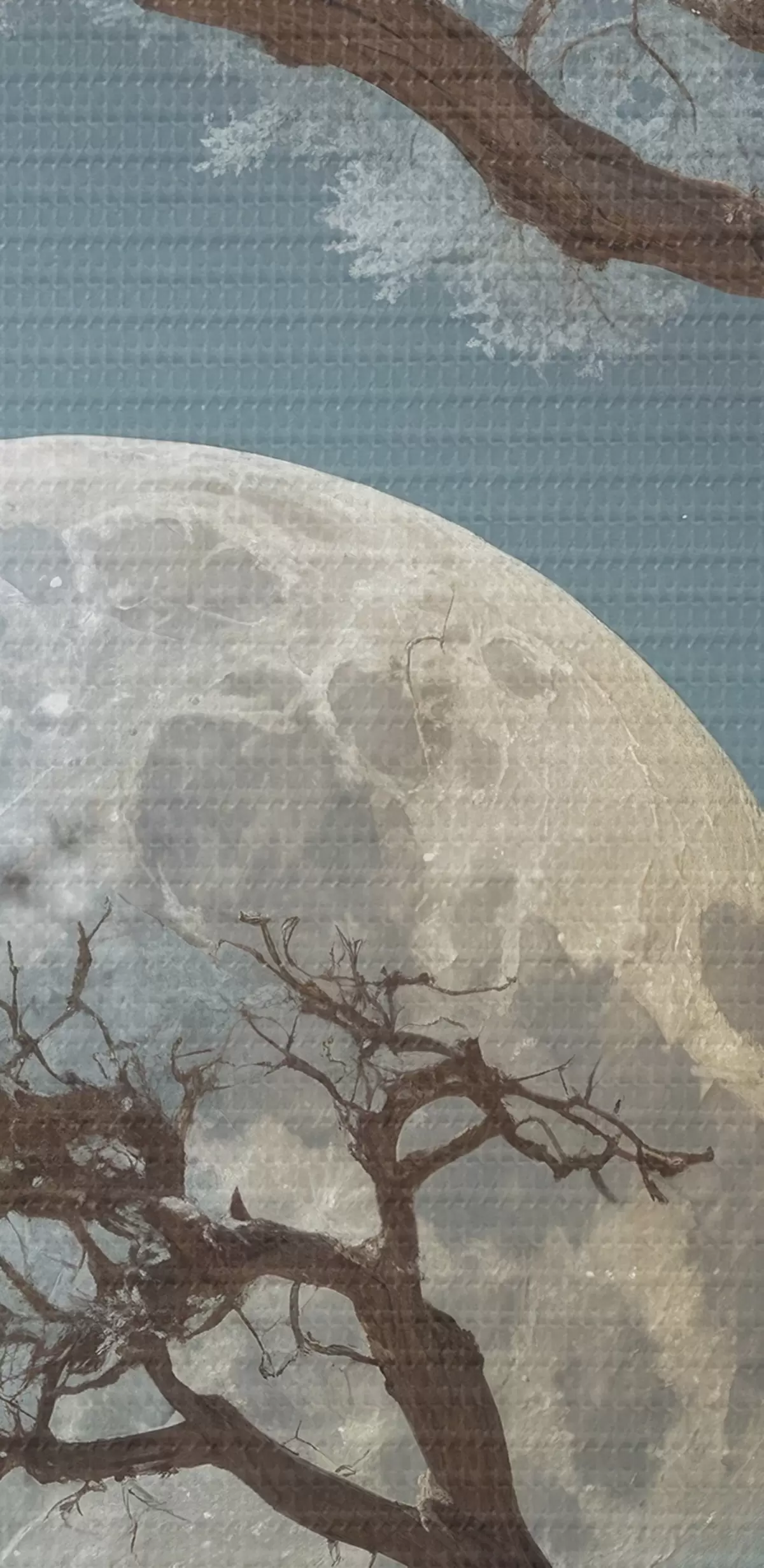 Ronde schilderijen Boom in het midden van een meer op maanachtergrond Nr r44481