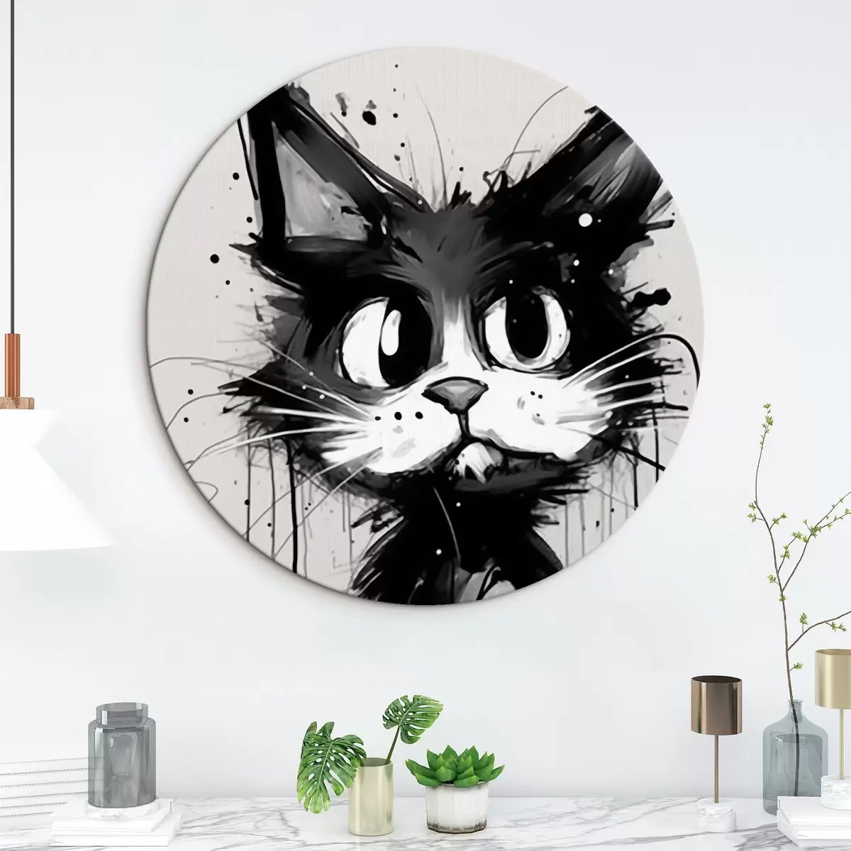 Ronde schilderijen Kat in schetsstijl met verfspatten r44483