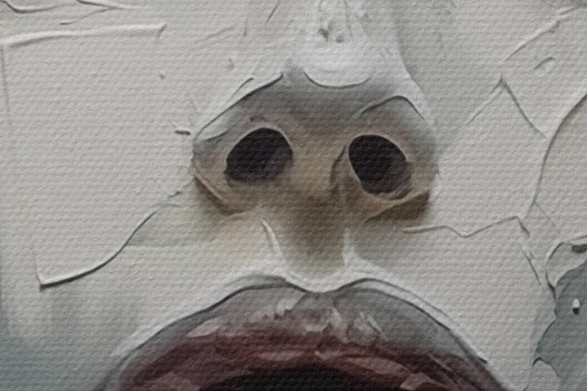 Het schilderij kan voorzichtig worden schoongeveegd met een droge zachte doek of spons; het wordt niet aanbevolen om natte producten te gebruiken. Het gebruik van een vochtige spons is alleen toegestaan als het schilderij gevernist is.