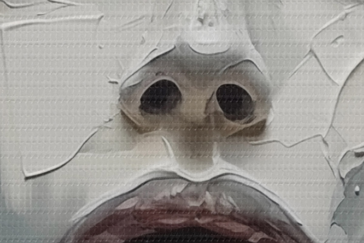Om het doek op te spannen op spielatten zonder de afbeelding te beschadigen, gebruiken we gespiegeld beeld.