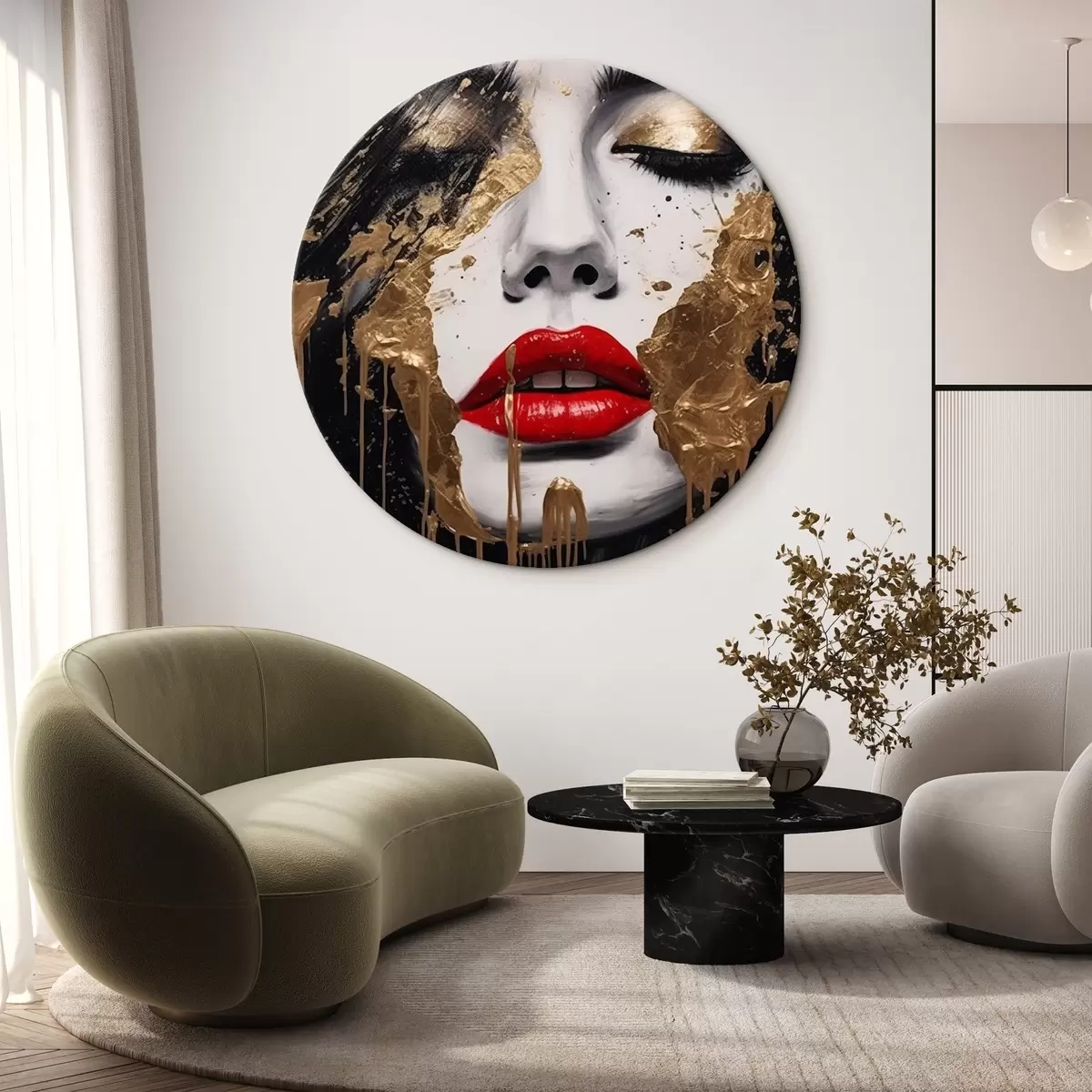 Ronde schilderijen Gezicht met rode lippen Nr r44492