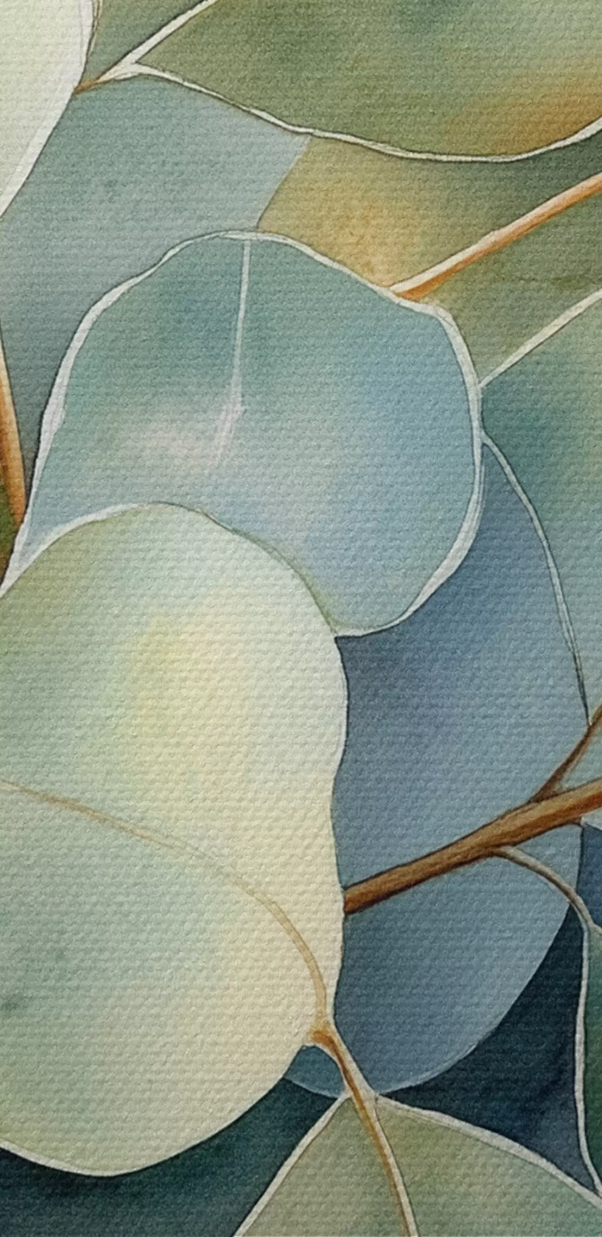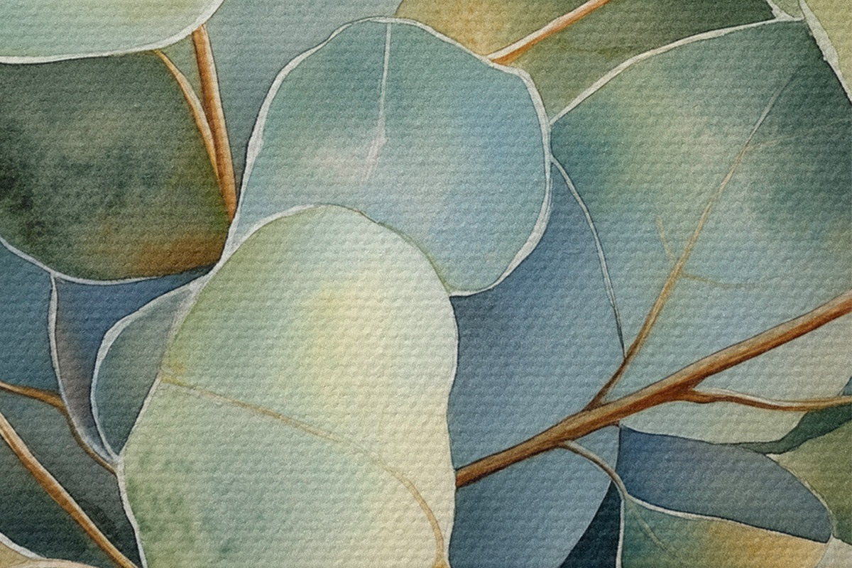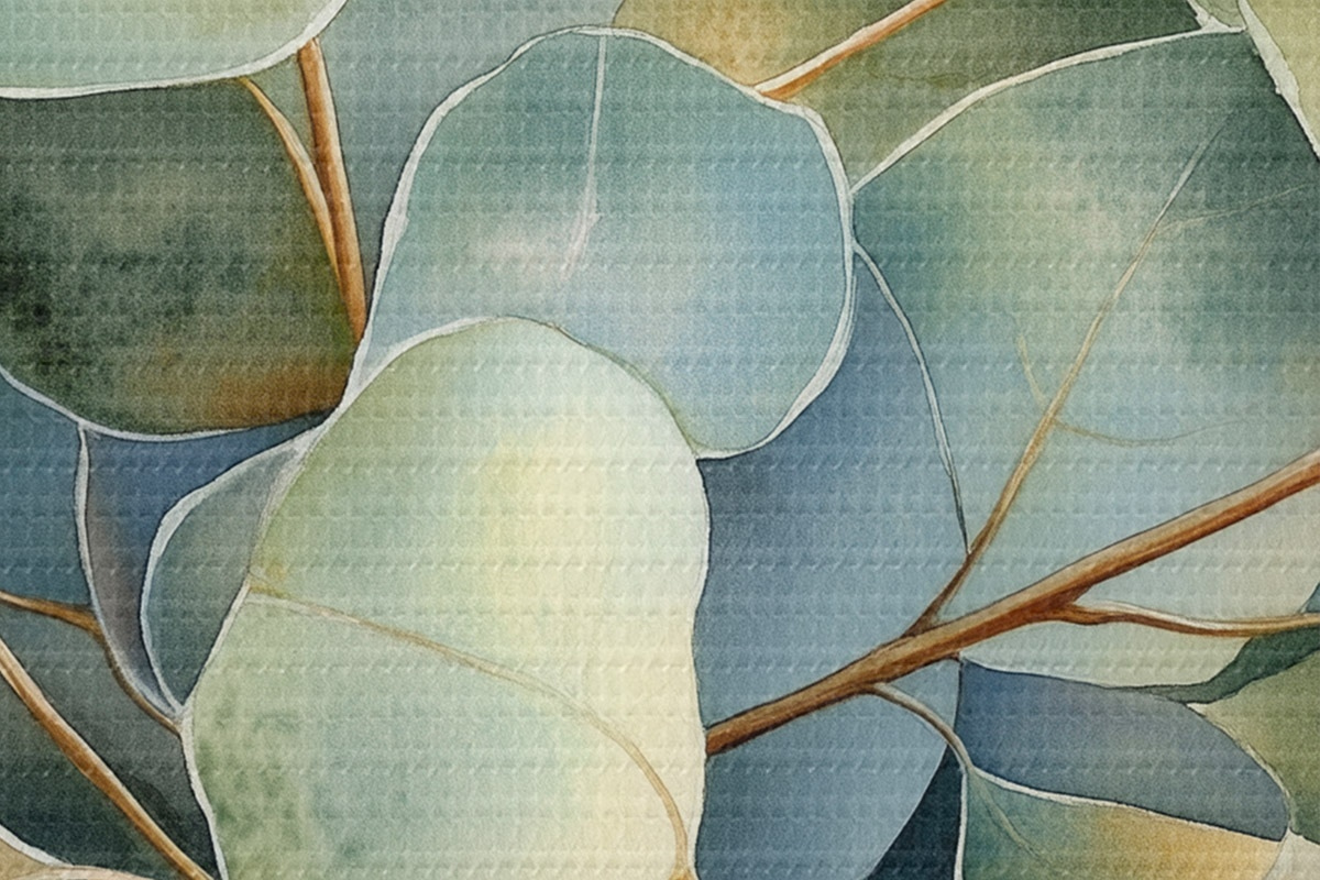 Ronde schilderijen Eucalyptusbladeren, aquarel, natuur Nr r44502