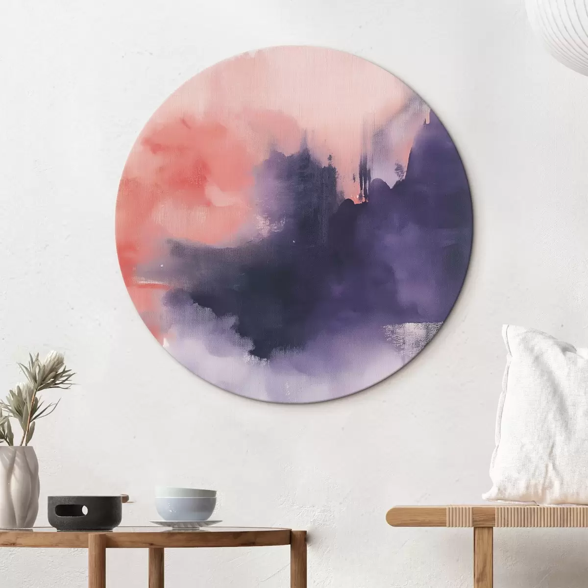 Ronde schilderijen Abstractie in acrylstijl, penseelstreken, paars en roze Nr r44507