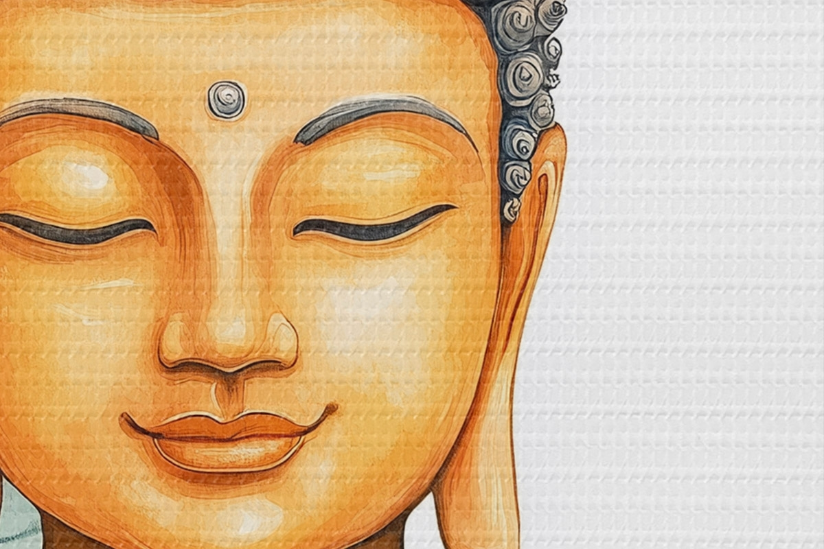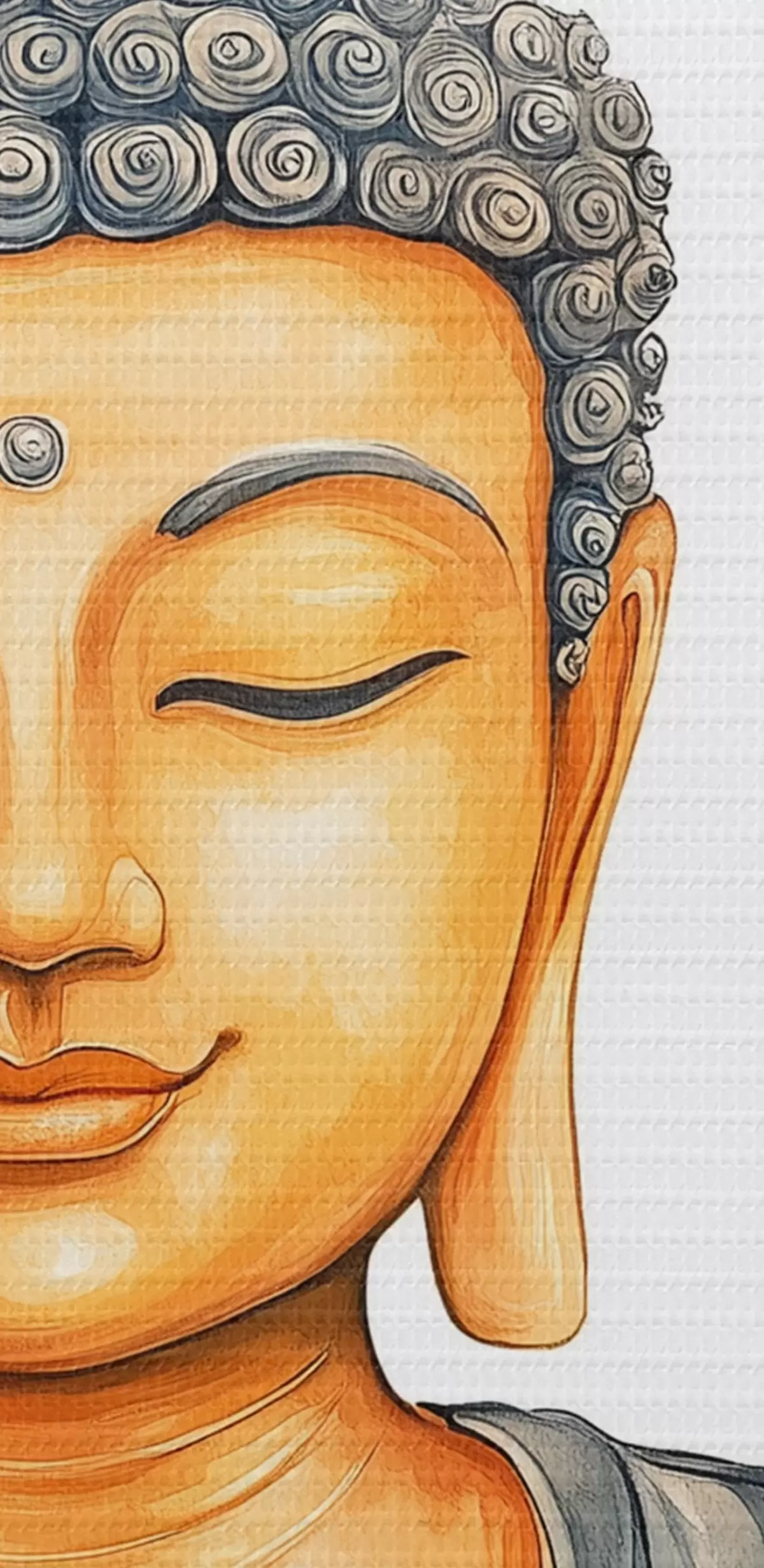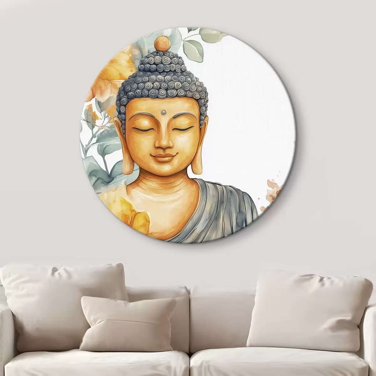 Ronde schilderijen Boeddha omringd door oranje bloemen, aquarelstijl r44508