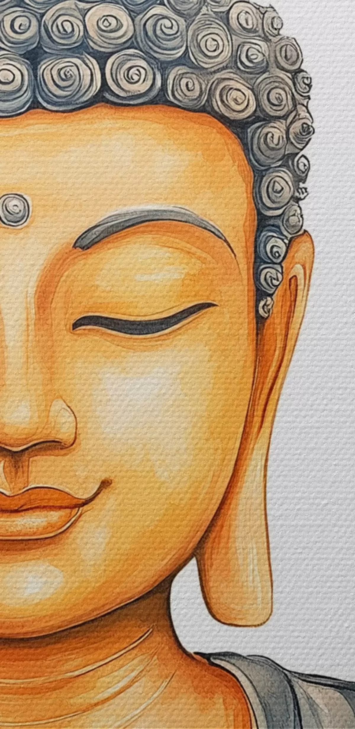 Ronde schilderijen Boeddha omringd door oranje bloemen, aquarelstijl Nr r44508