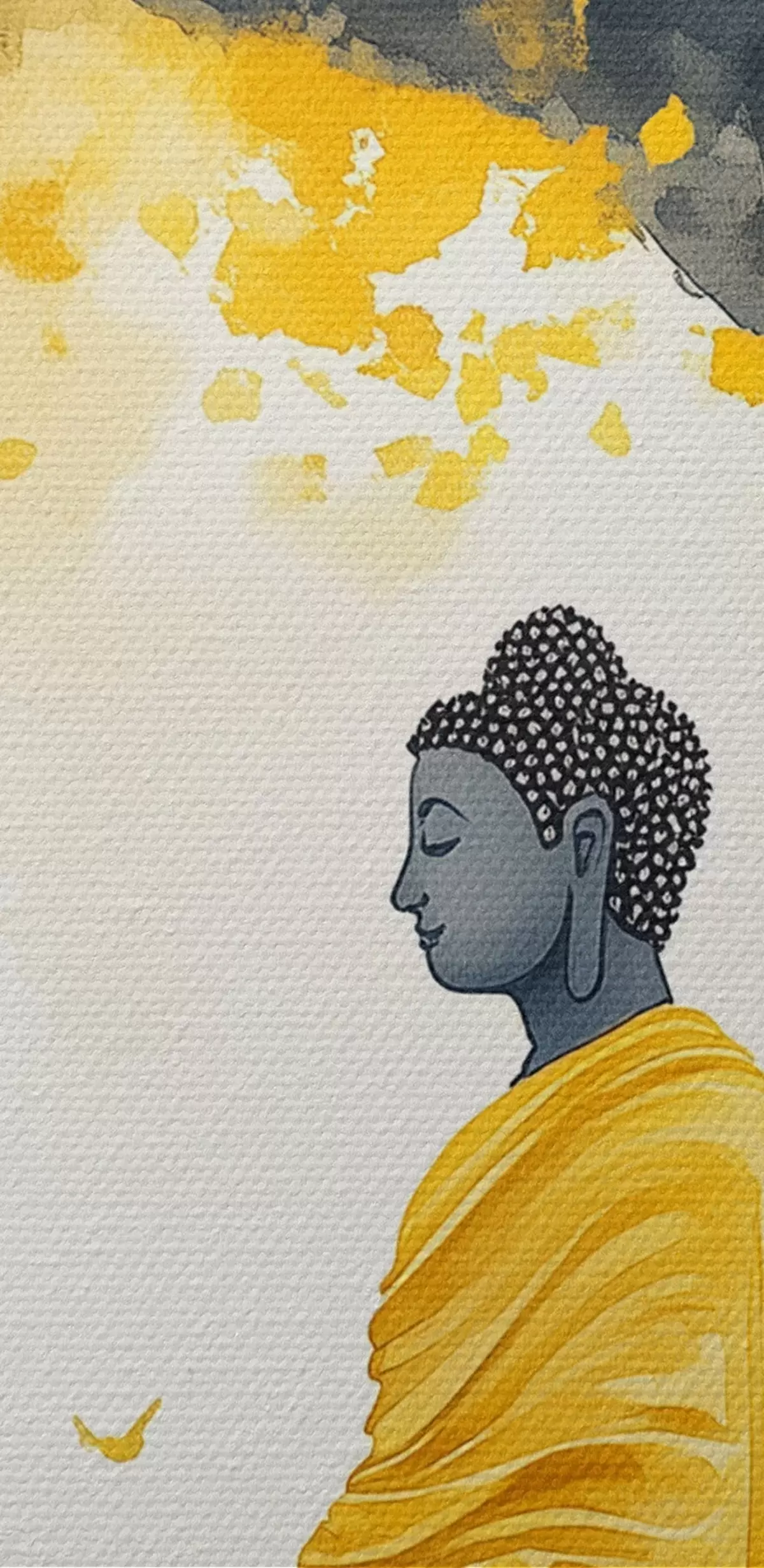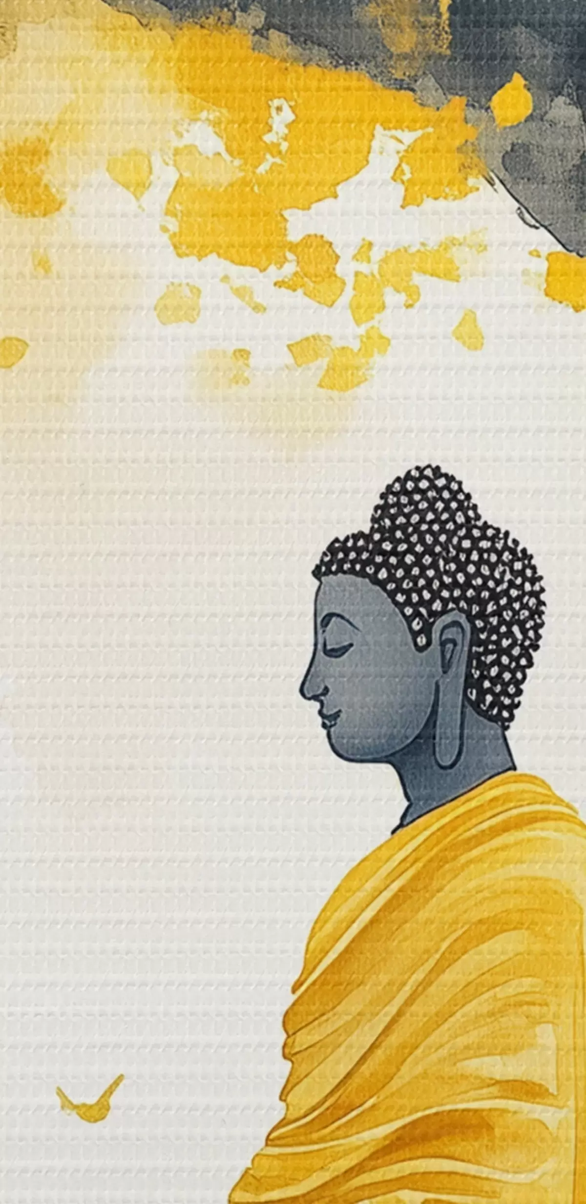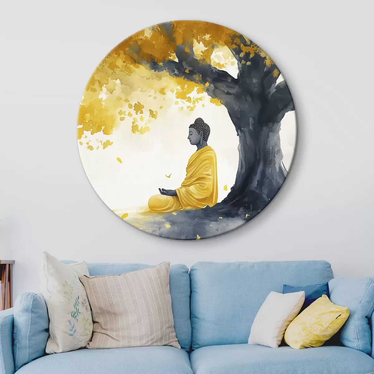 Ronde schilderijen Mediterende Boeddha onder de boom, gele en grijze kleuren Nr r44509