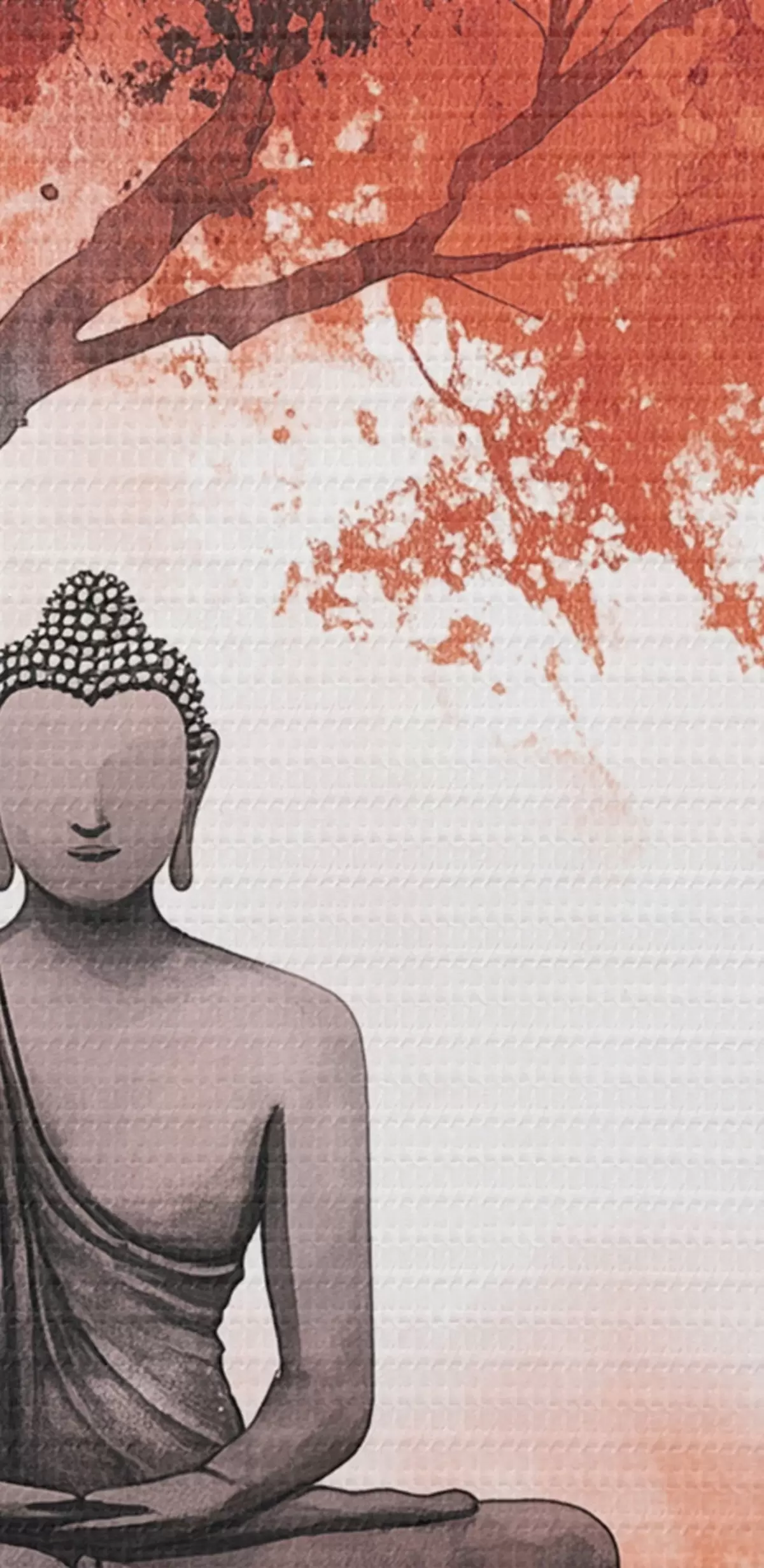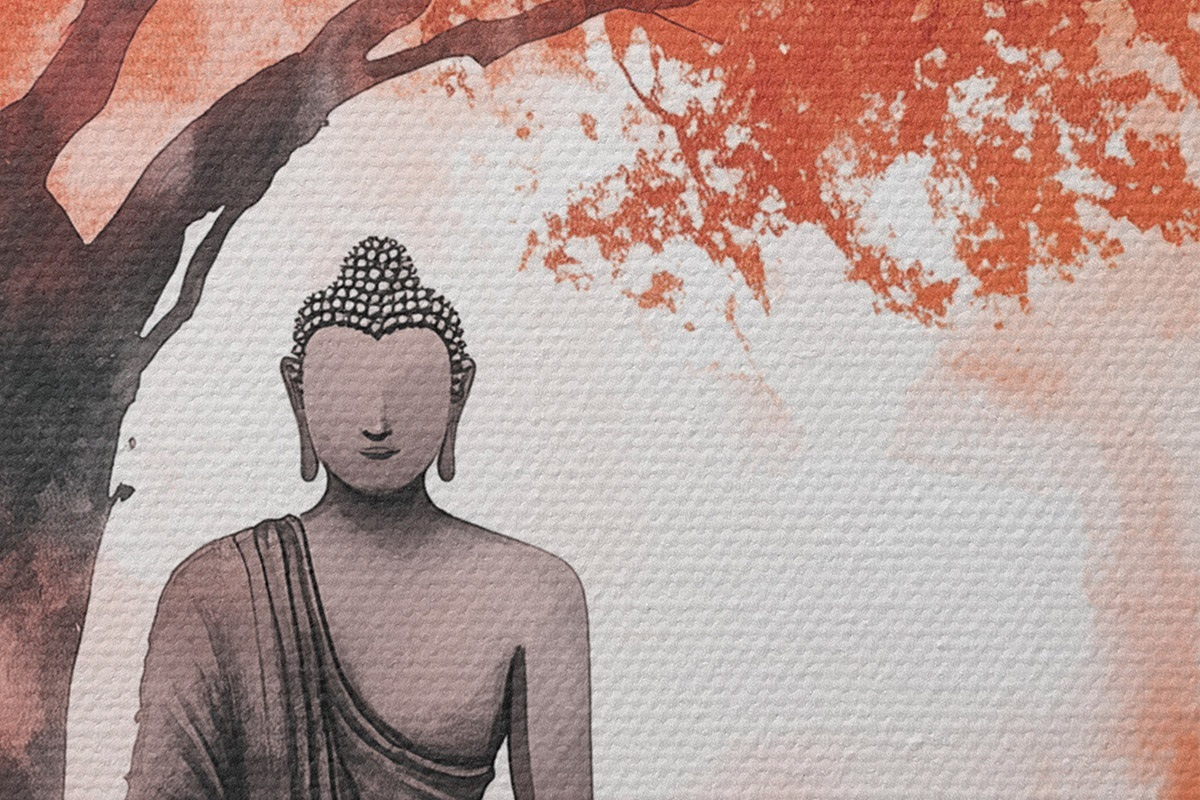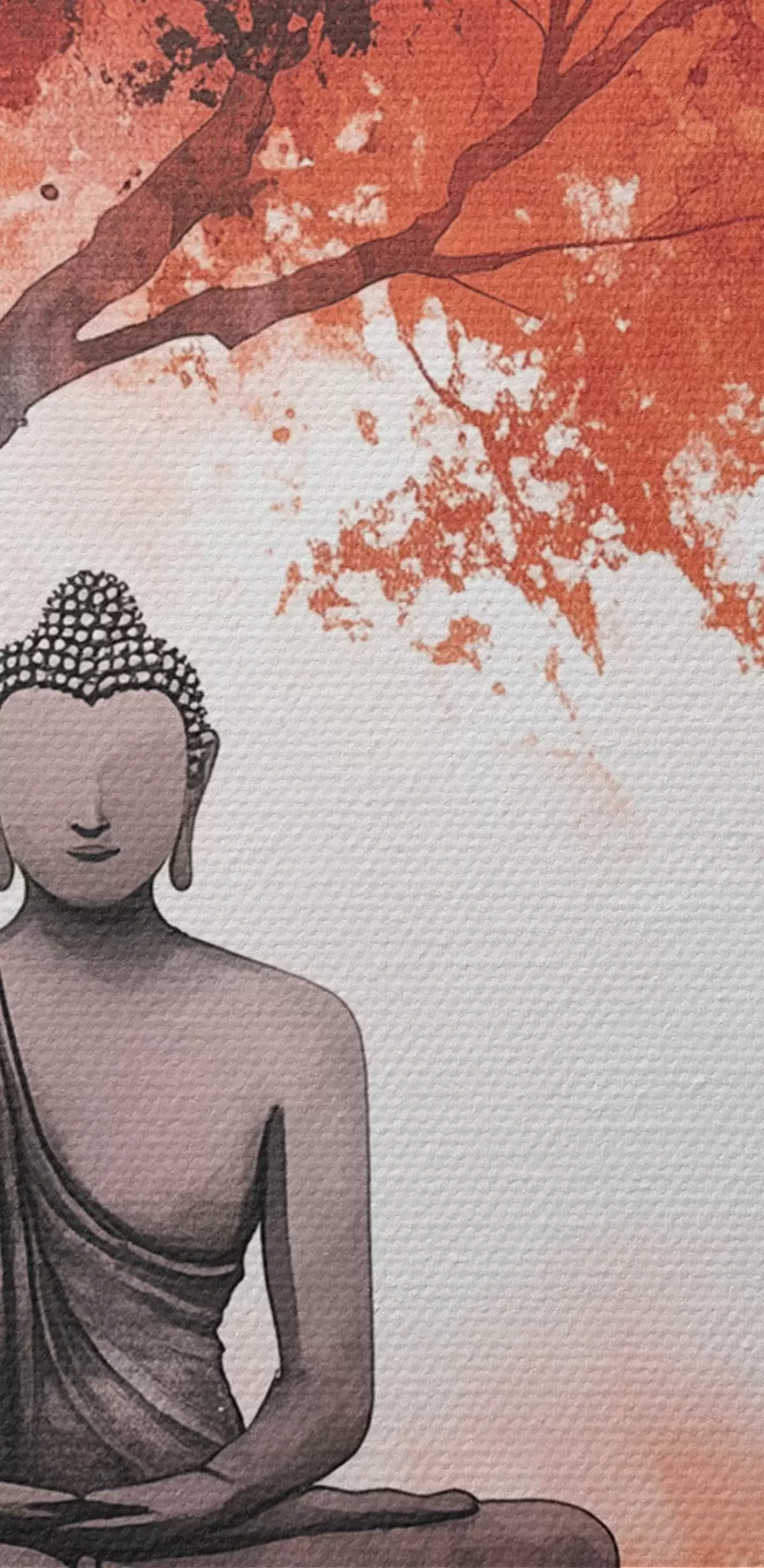 Ronde schilderijen Boeddha zittend onder de boom, meditatie, spiritueel, oranje kleuren Nr r44512