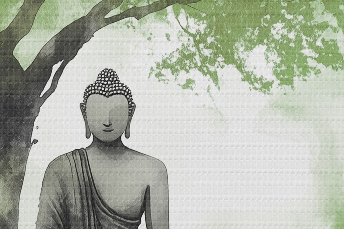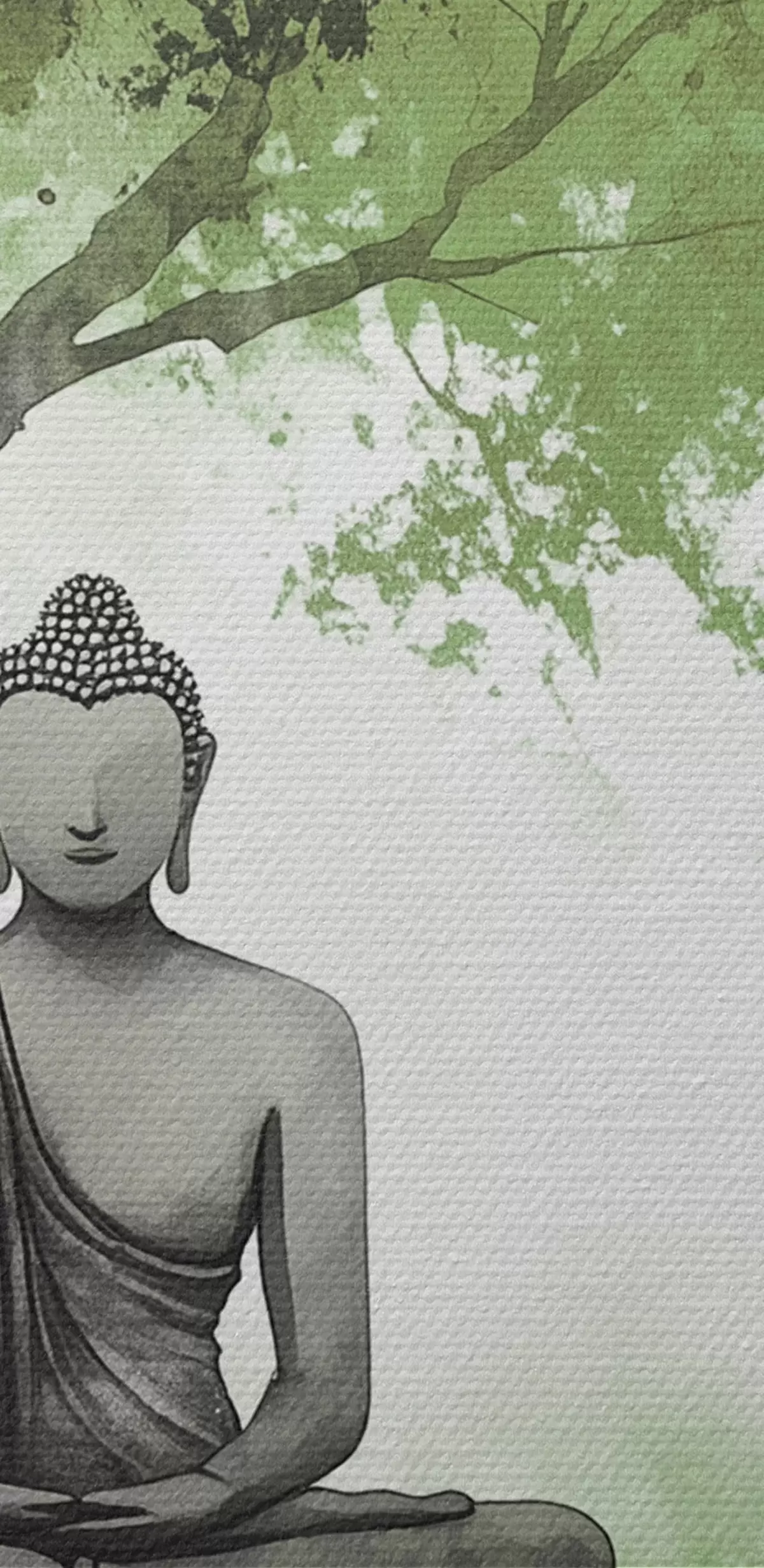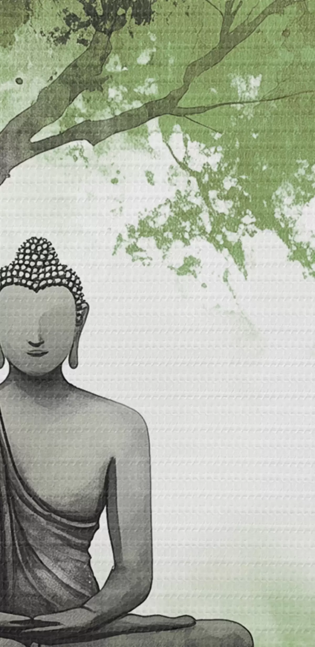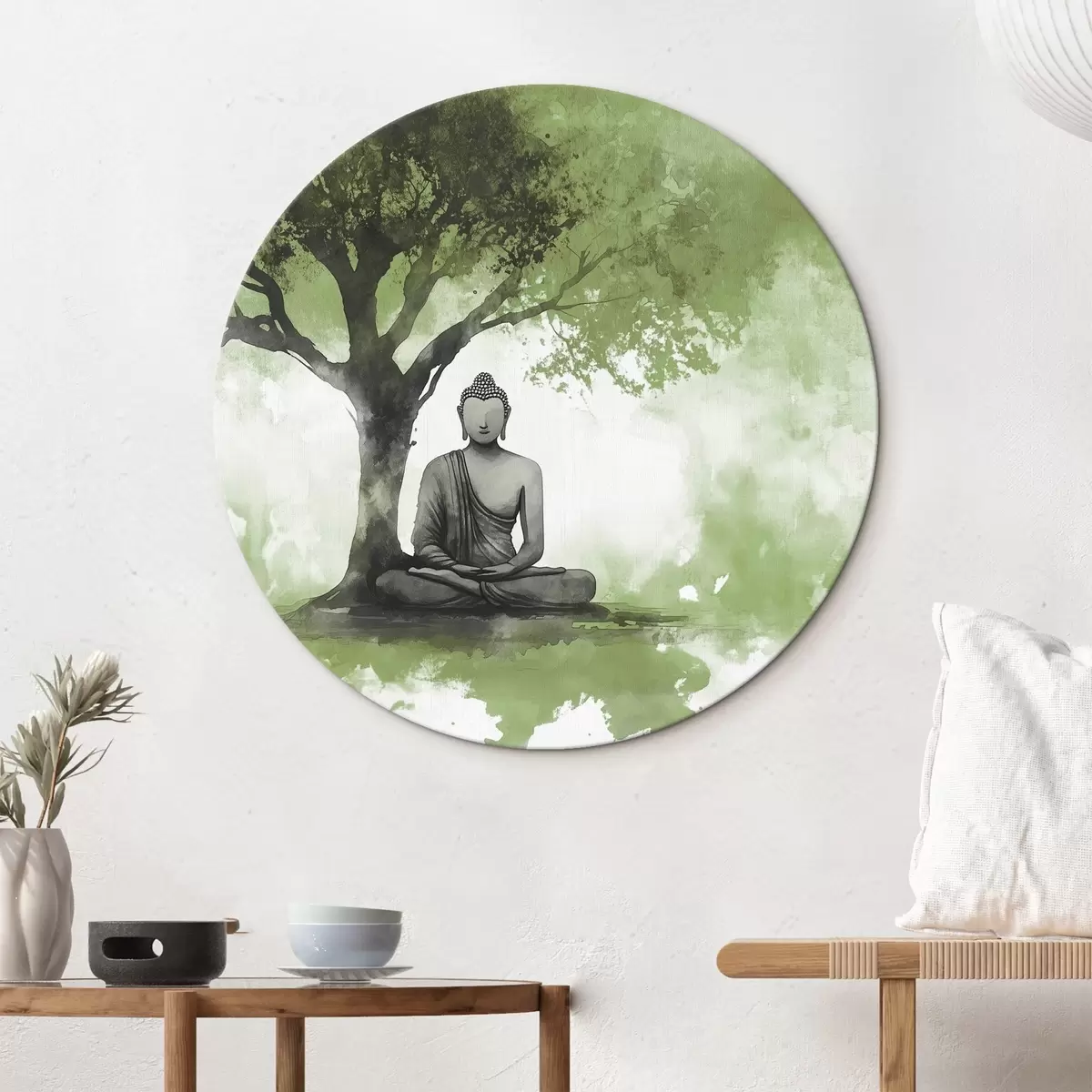 Ronde schilderijen Boeddha zittend onder de boom, meditatie, spiritueel, groene kleuren Nr r44512v1