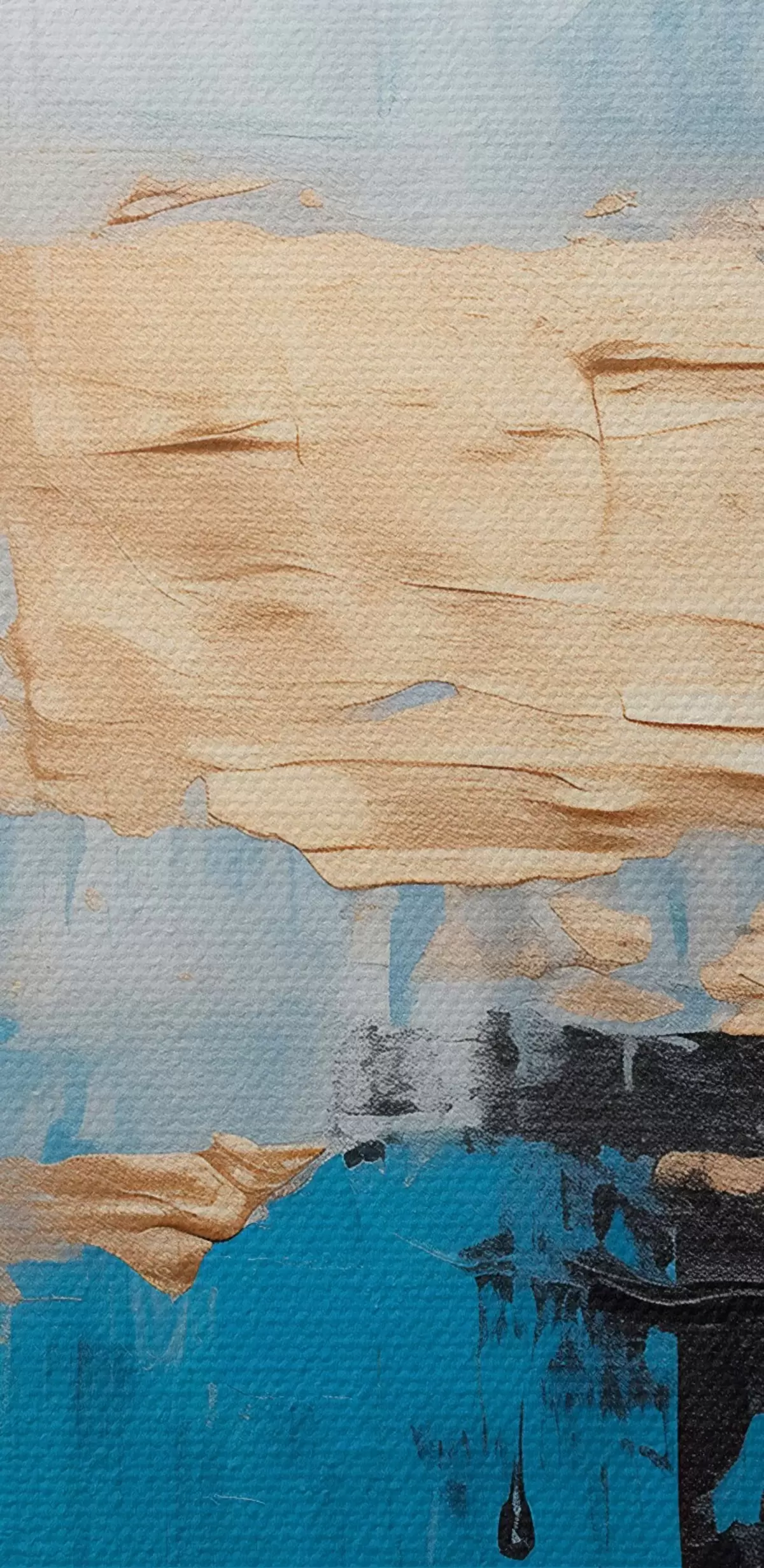 Het schilderij kan direct na ontvangst worden opgehangen. Het schilderij wordt opgespannen op een 2 cm breed houten spieraam.