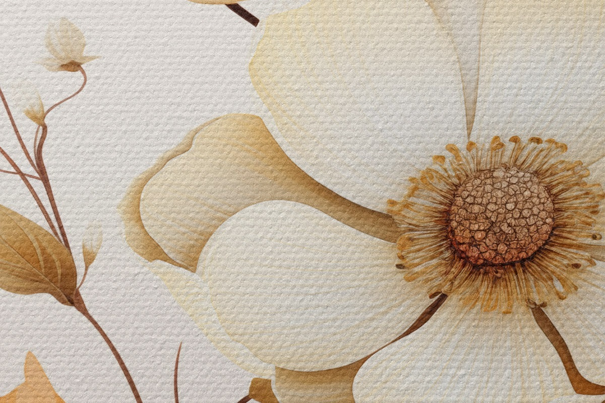 Ronde schilderijen Lichte bloemen op een beige achtergrond r44549