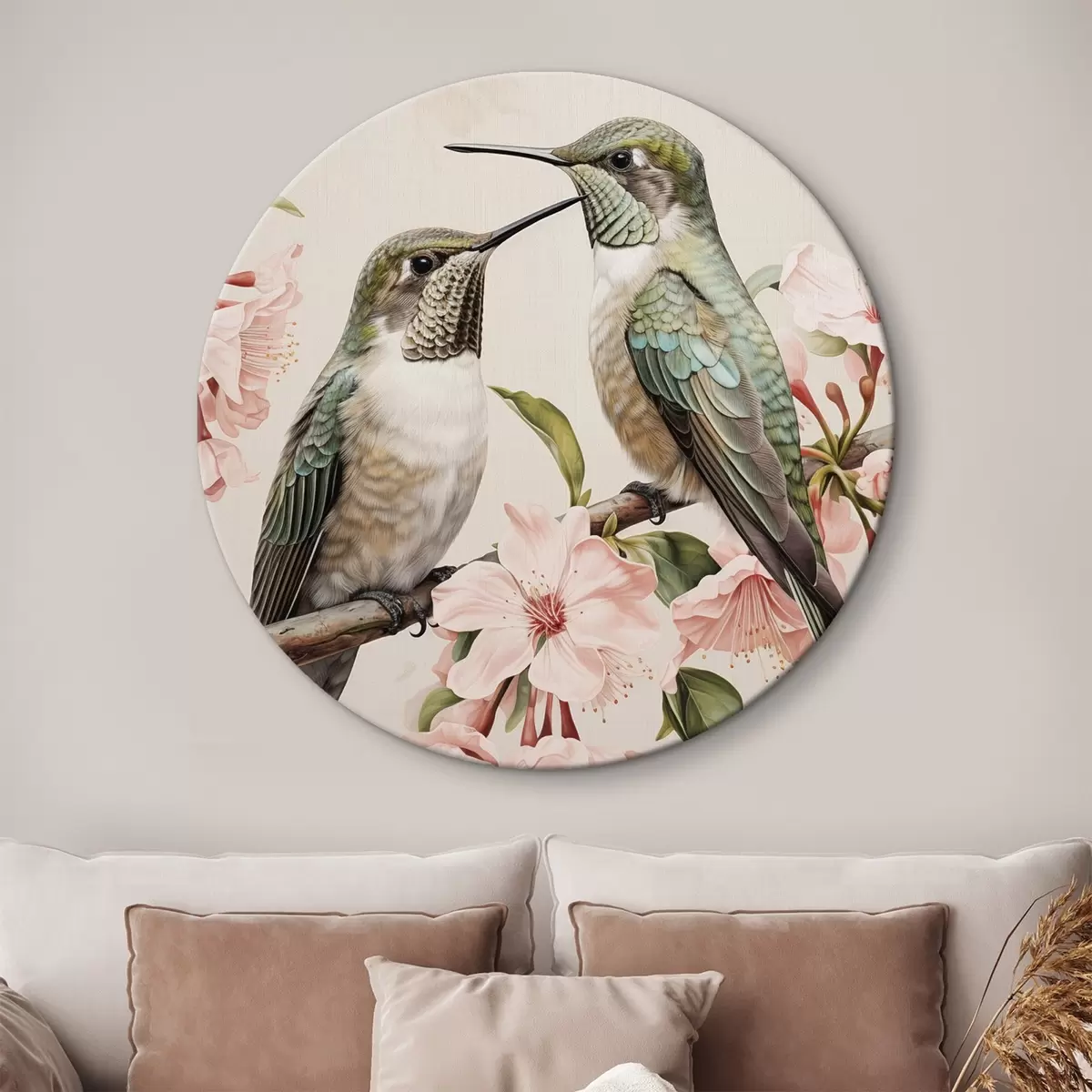 Ronde schilderijen Een paar vogels op een tak Nr r44550