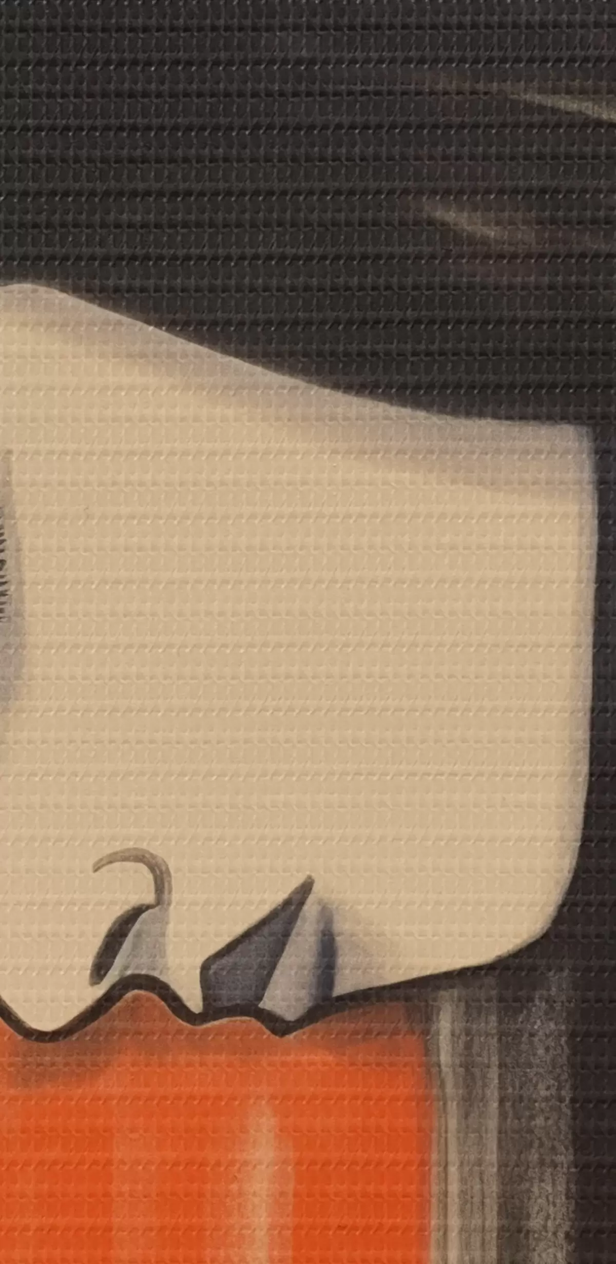 Het schilderij kan voorzichtig worden schoongeveegd met een droge zachte doek of spons; het wordt niet aanbevolen om natte producten te gebruiken. Het gebruik van een vochtige spons is alleen toegestaan als het schilderij gevernist is.