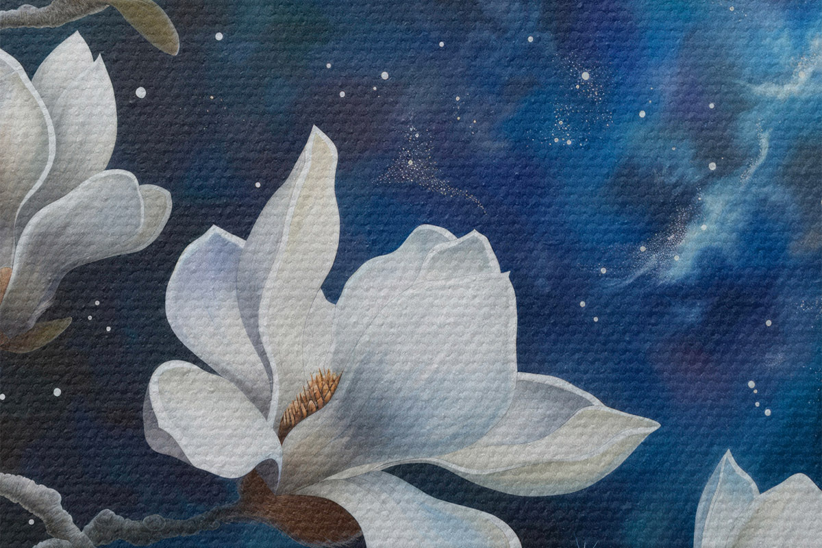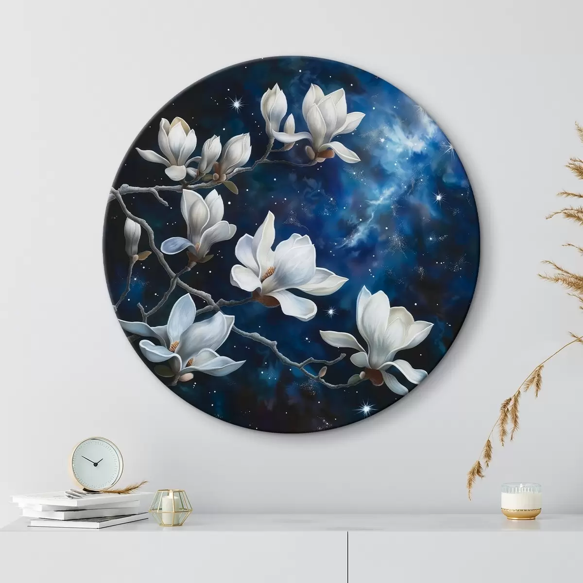 Ronde schilderijen Magnolia bloemen tegen de lucht Nr r44585