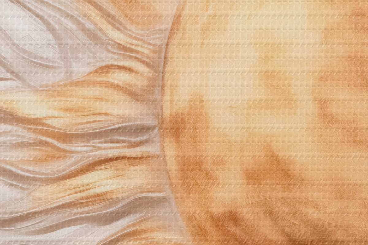 De fijne weving van draden op dit doek lijkt op het oppervlak van professionele schildersdoeken.