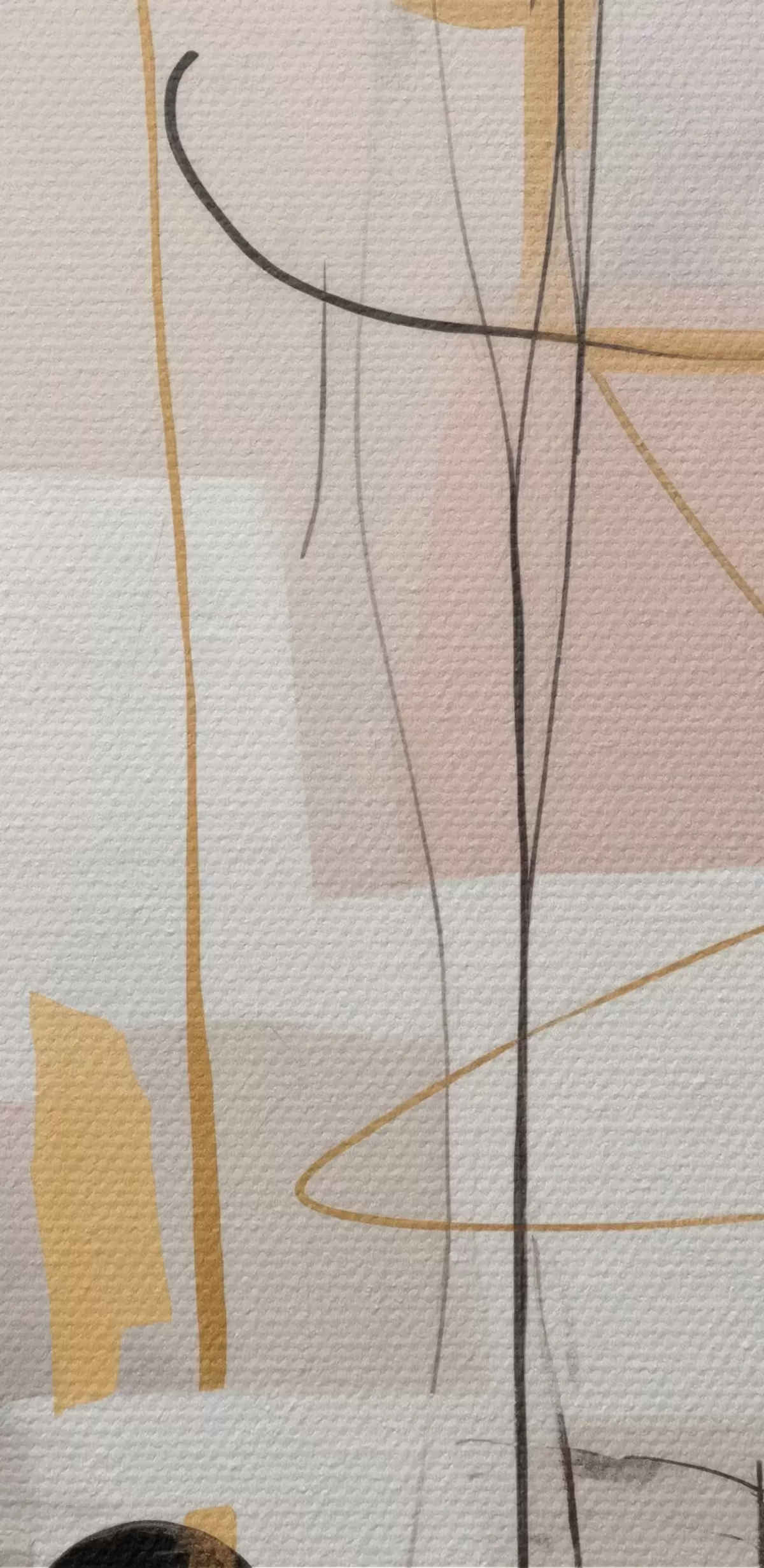 Het schilderij kan direct na ontvangst worden opgehangen. Het schilderij wordt opgespannen op een 2 cm breed houten spieraam.