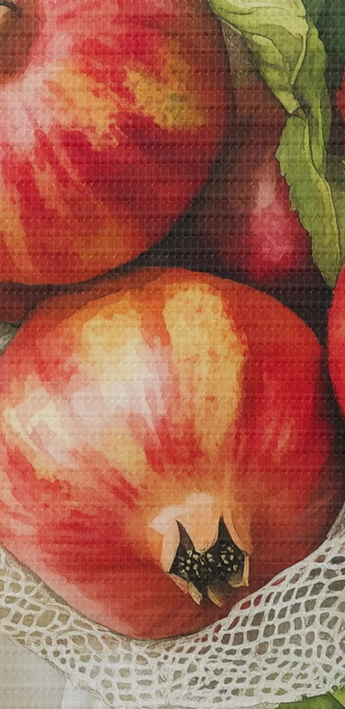 Ronde schilderijen Granaatappels met muntblaadjes op de linnen tafelkleden, rustieke stijl Nr r44611