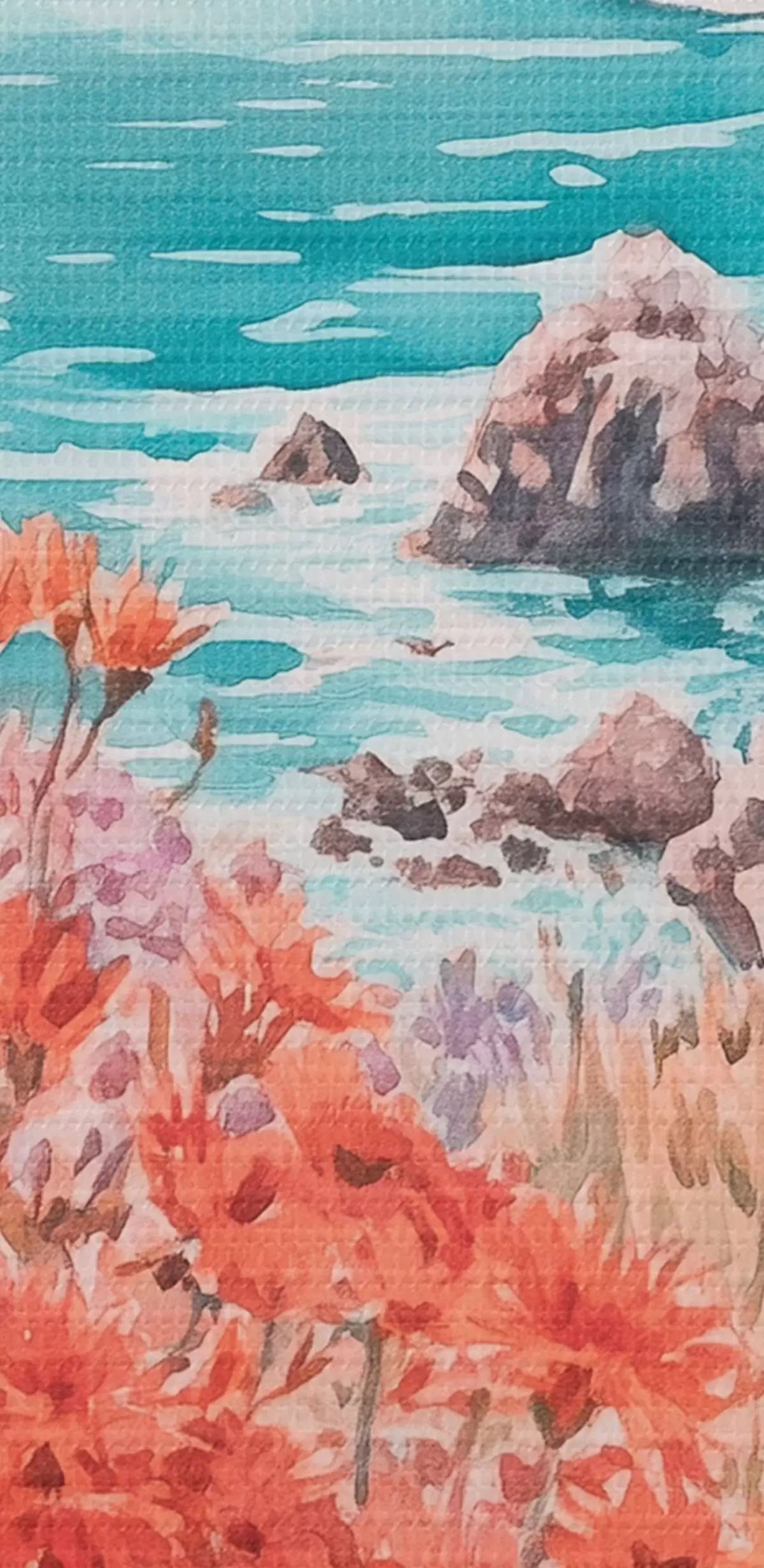 Ronde schilderijen Portugal oceaan kust op de zonsondergang, weide bloemen Nr r44612