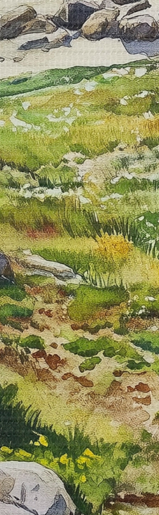 Ronde schilderijen Zeekust met rotsen en groen gras, aquarel stijl, zomer Nr r44616