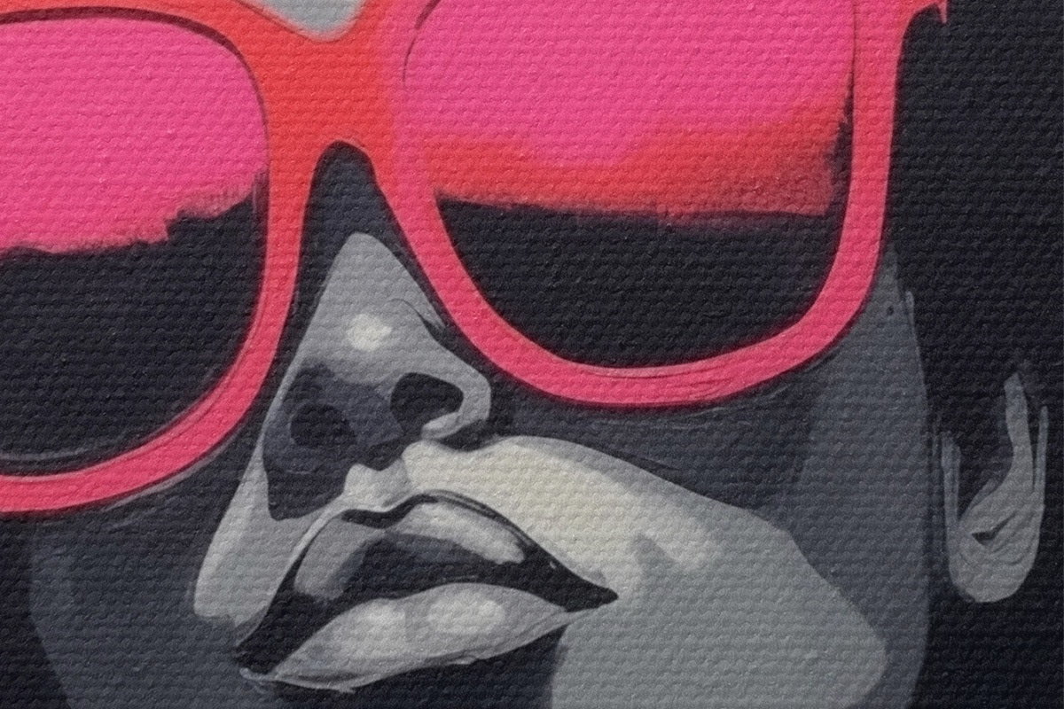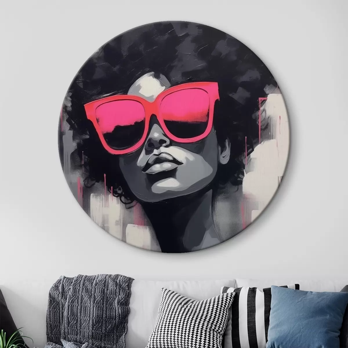 Ronde schilderijen Meisje met roze bril, zwart-witte stijl Nr r44624