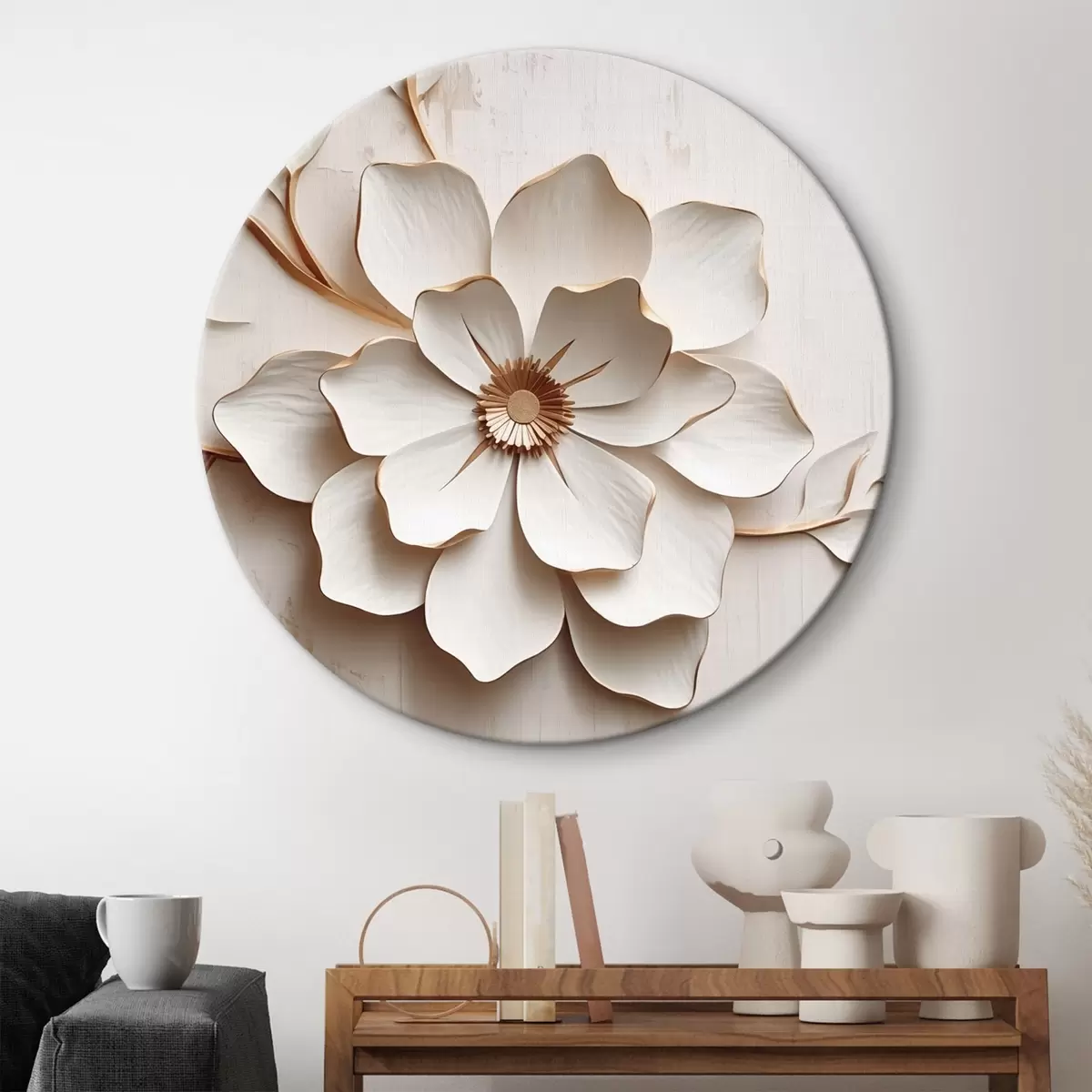 Ronde schilderijen Bloem met volumetrische bloemblaadjes r44630