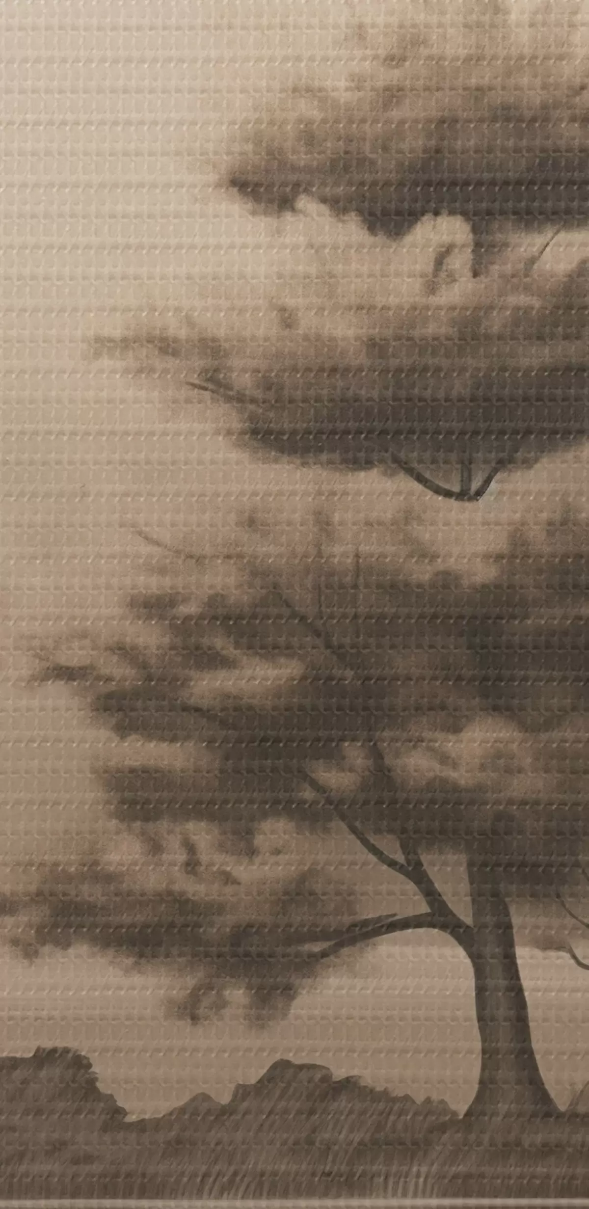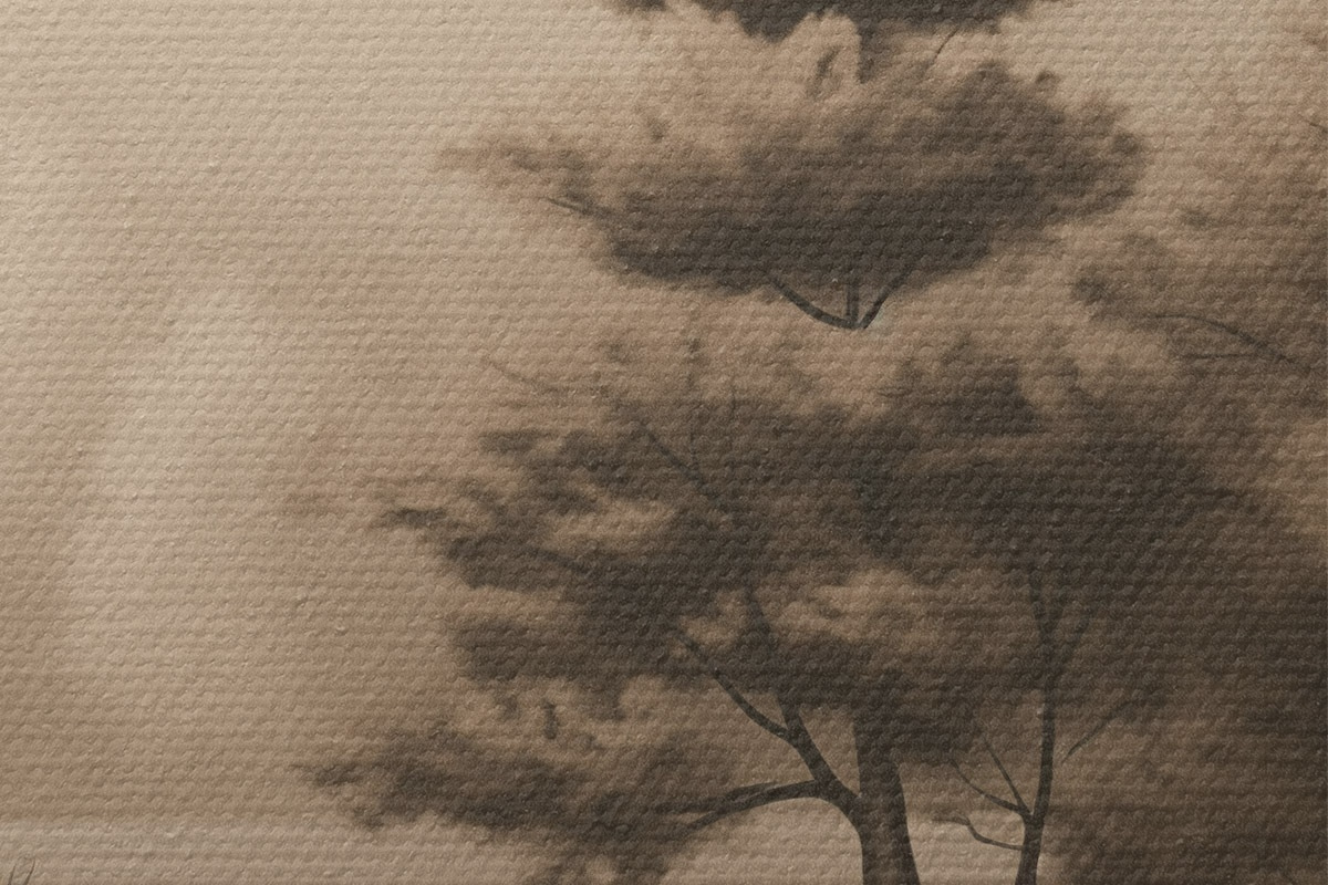 Ronde schilderijen Meer en bomen in sepia Nr r44633
