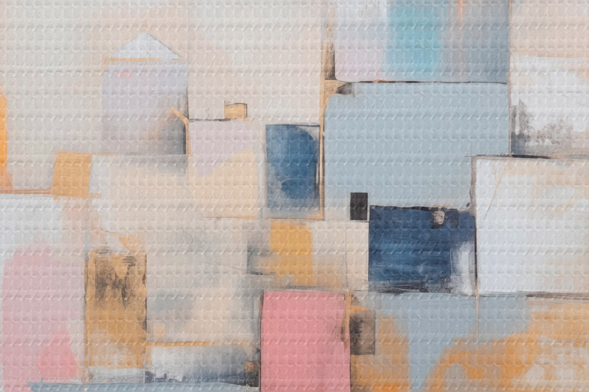 De fijne weving van draden op dit doek lijkt op het oppervlak van professionele schildersdoeken.
